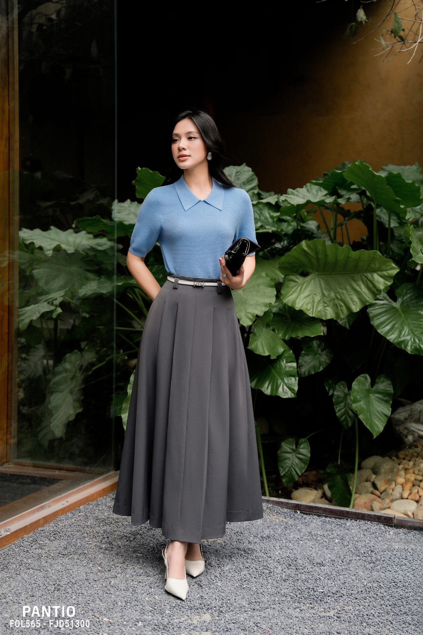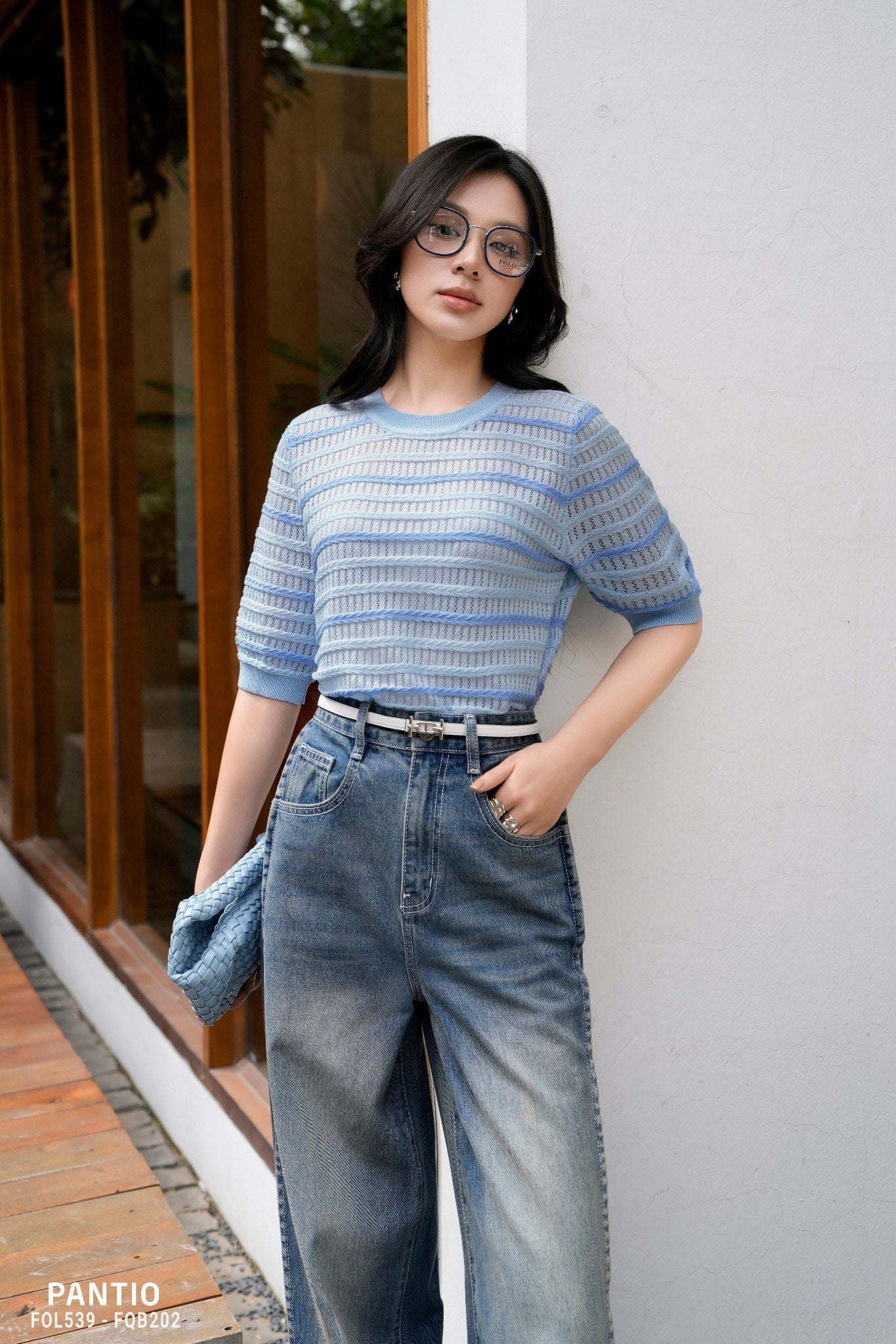 Sự cá tính được thể hiện qua áo len cổ V tay dài phối khuy đá mix cùng quần short thô kẻ ống suông, hay nét năng động đầy tự tin trong thiết kế áo len cổ bẻ tay dài gấu bo chun kết hợp quần jean ống vẩy. Đặc biệt, điểm nhấn ấn tượng nhất nằm ở chiếc áo len cổ thuyền tay cánh dơi bất đối xứng phối cùng quần short vải đính khuy đá cao cấp, biểu trưng cho tinh thần thời trang tự do và phóng khoáng của người phụ nữ hiện đại.