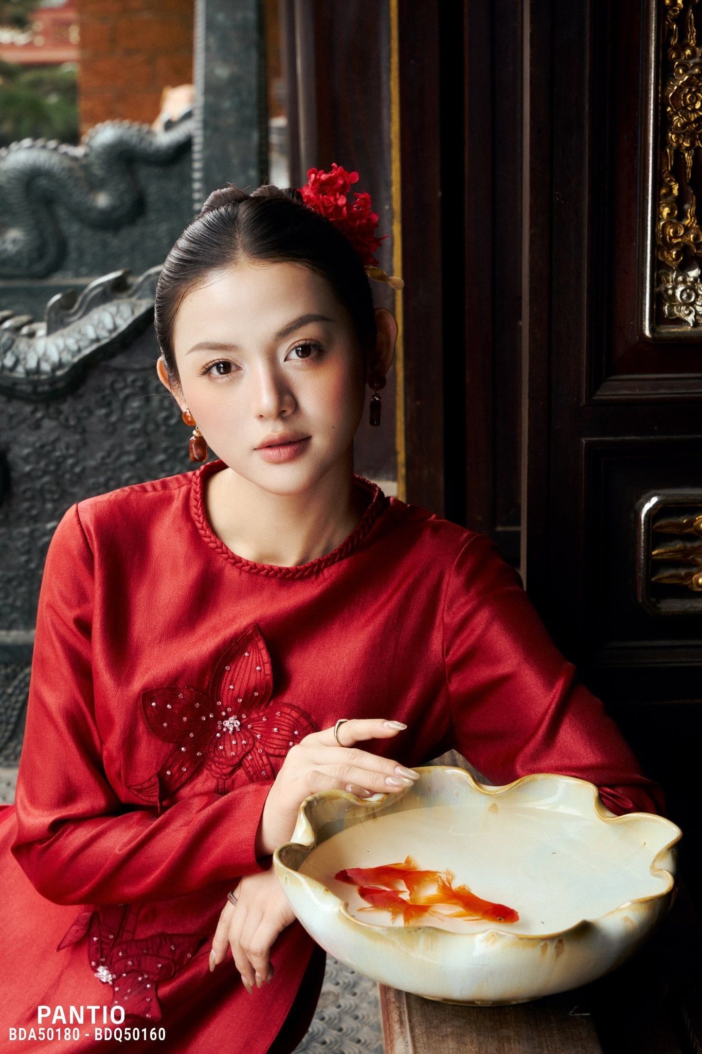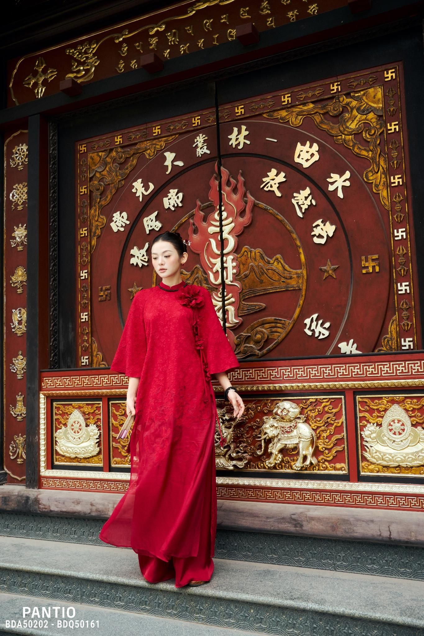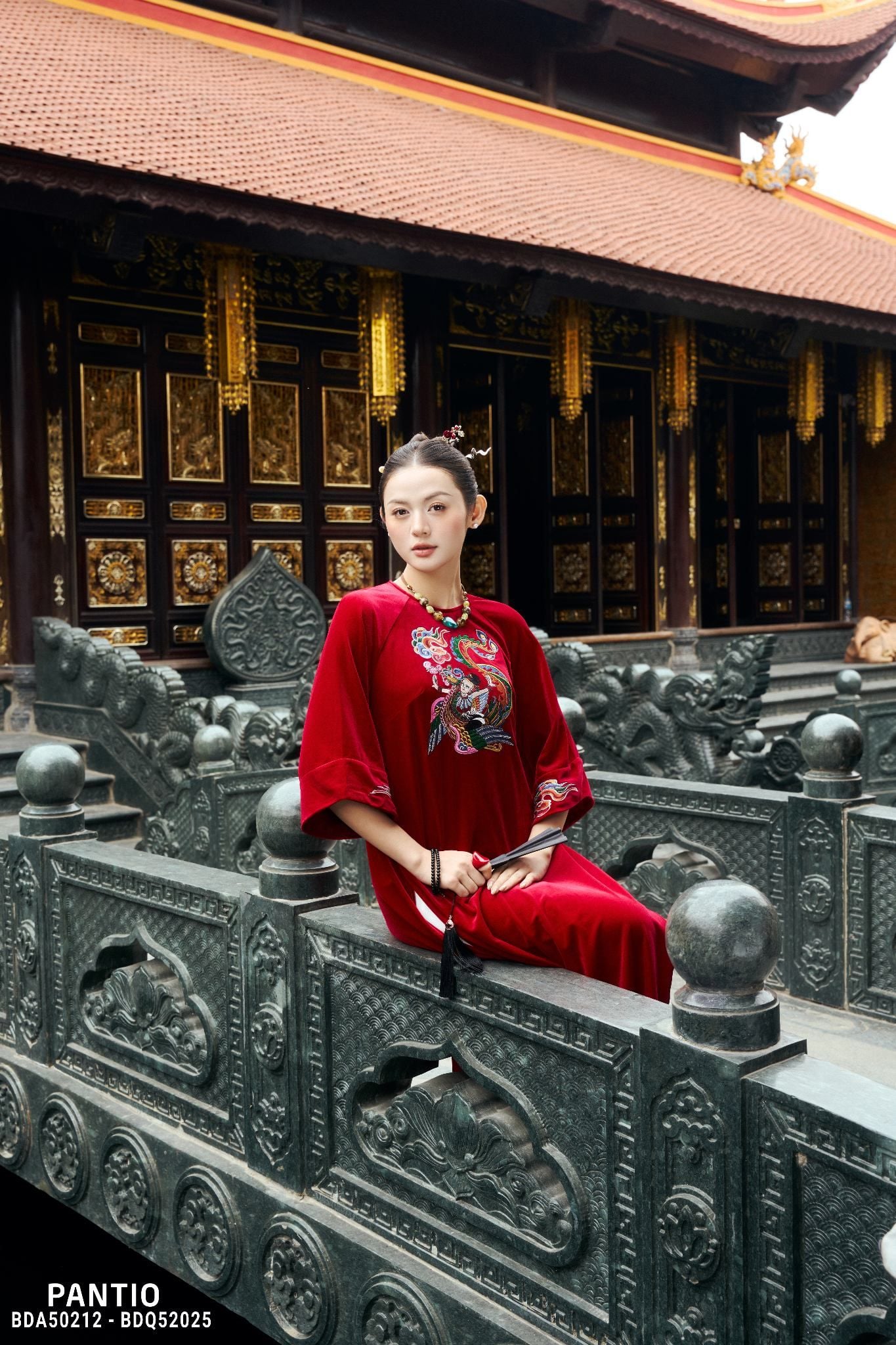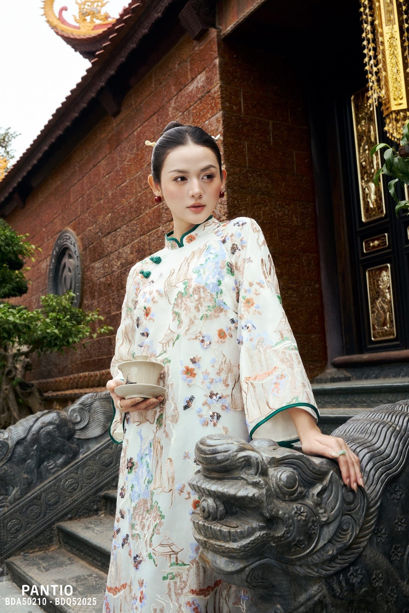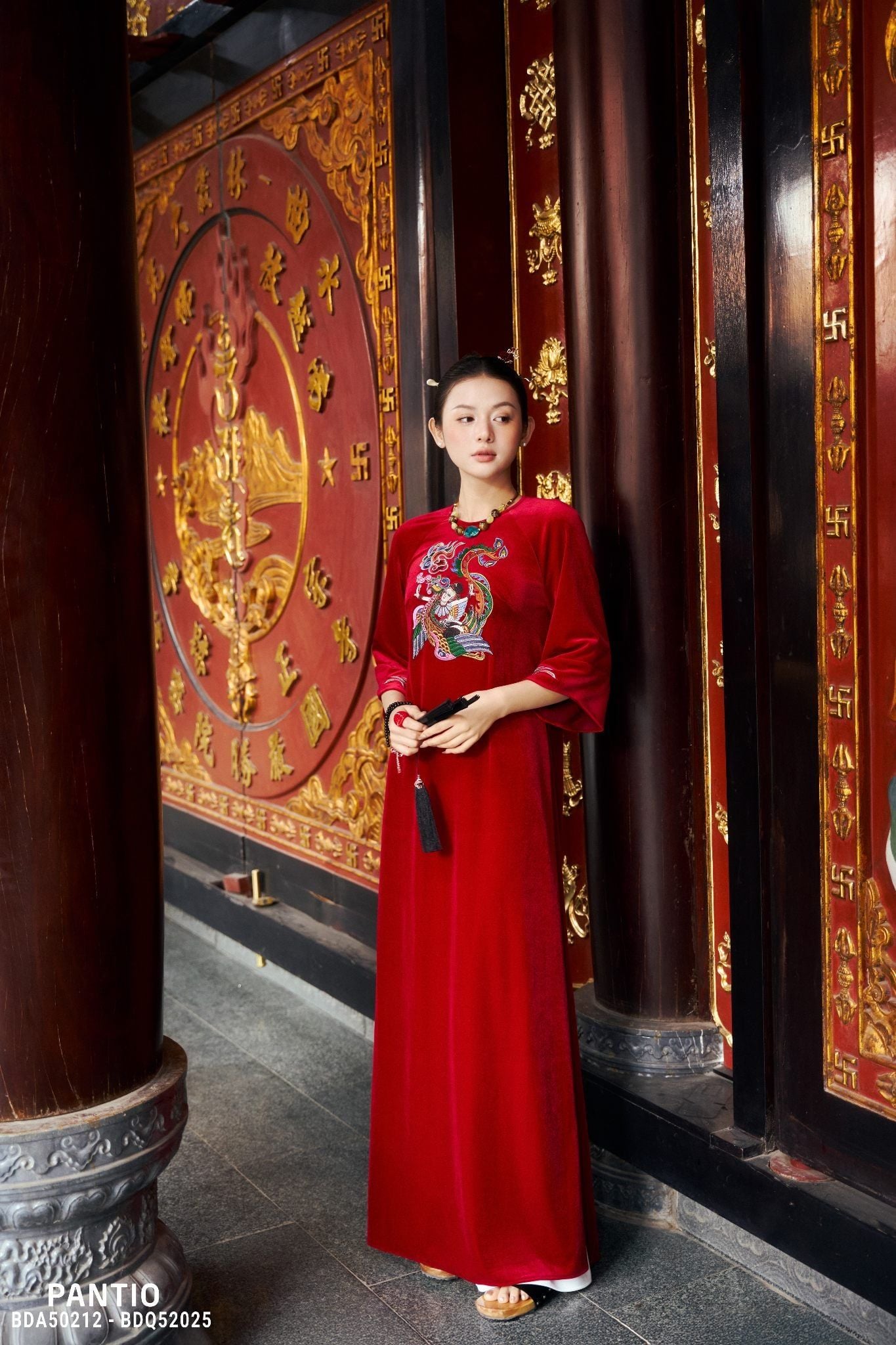 Lấy cảm hứng từ mỹ học Á Đông và những biểu tượng cát tường quen thuộc trong văn hóa phương Đông, BST là sự hòa quyện giữa linh thú, thiên nhiên và kiến trúc cổ, được tái hiện qua ngôn ngữ thêu tay, đính kết thủ công công phu. Trên nền chất liệu nhung trầm sang trọng, hình ảnh phượng, rồng cách điệu hiện lên sống động, mang ý nghĩa phúc lộc, thịnh vượng và khởi đầu viên mãn cho năm mới. Mỗi đường kim mũi chỉ đều được chăm chút tỉ mỉ, tạo nên chiều sâu thị giác và khí chất trang nhã cho người mặc.
