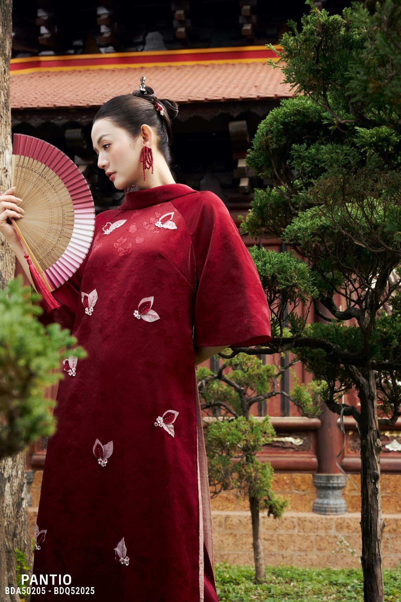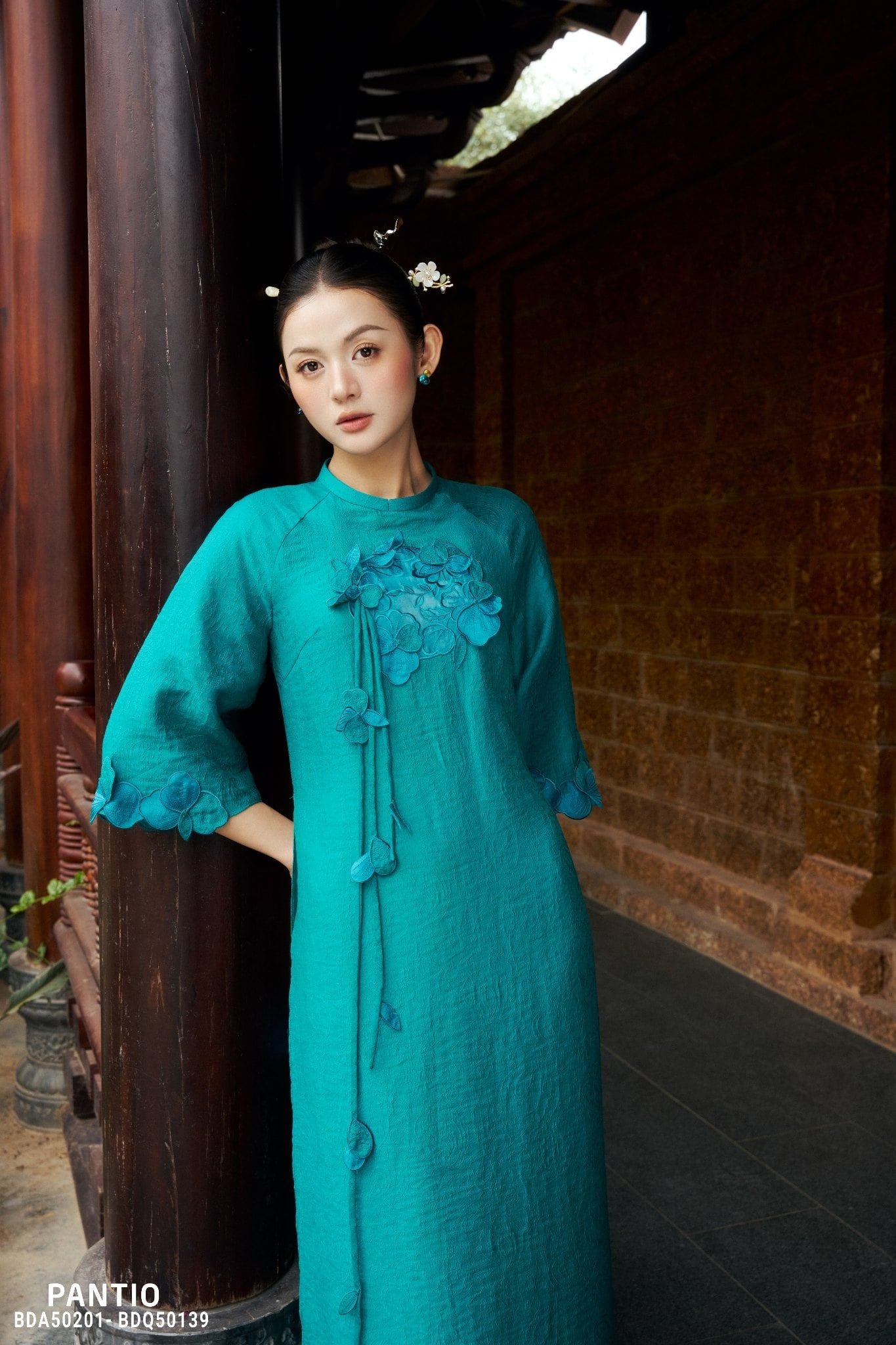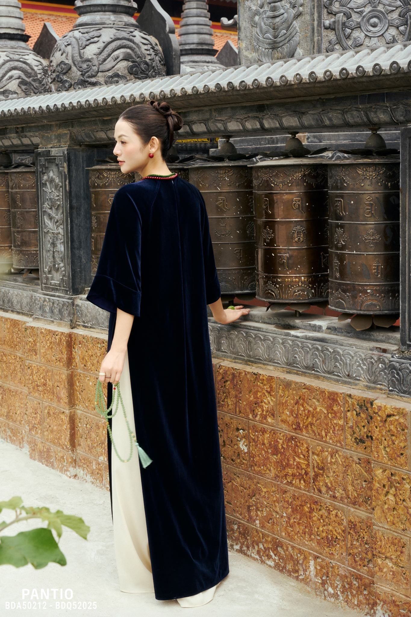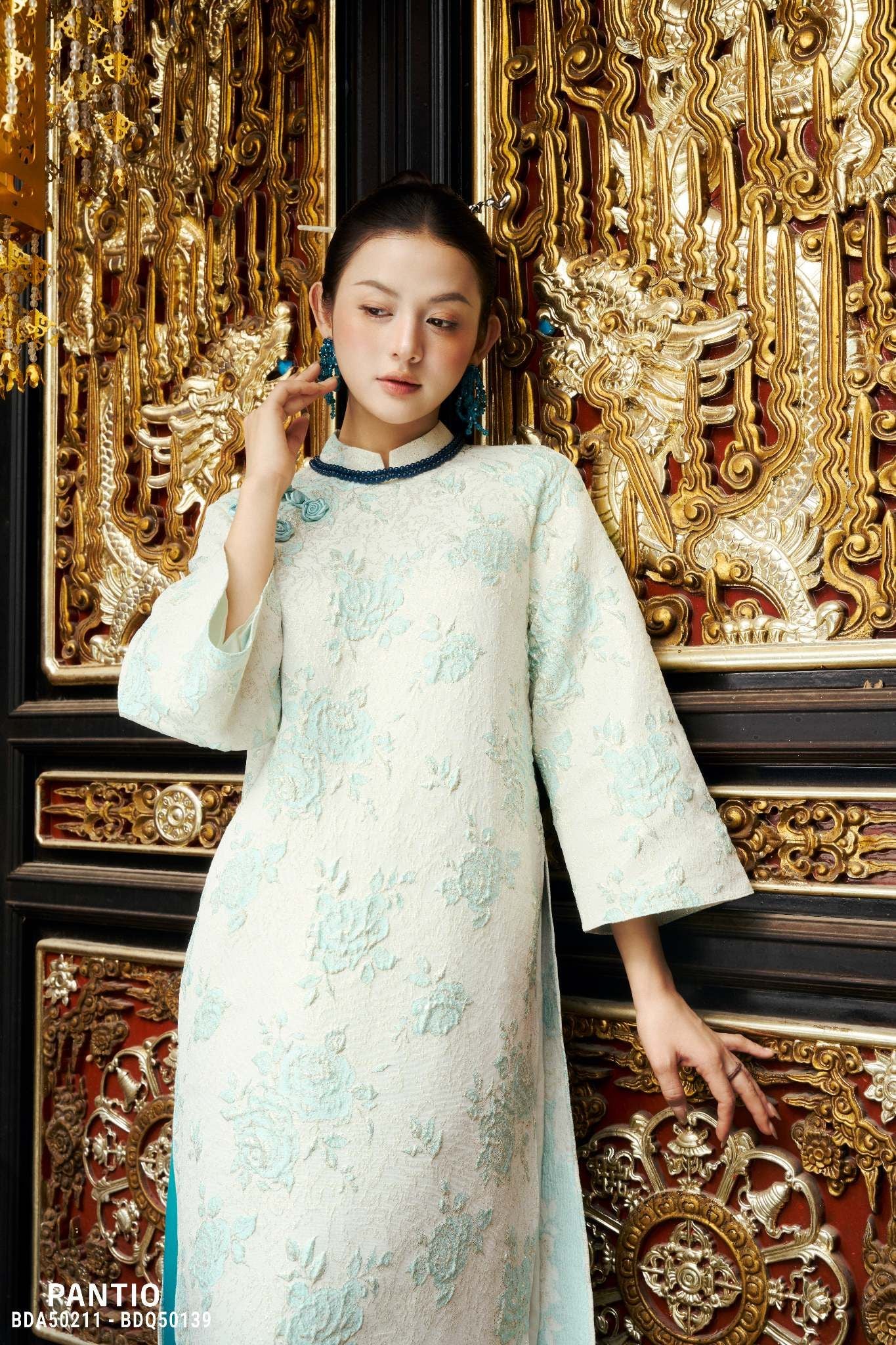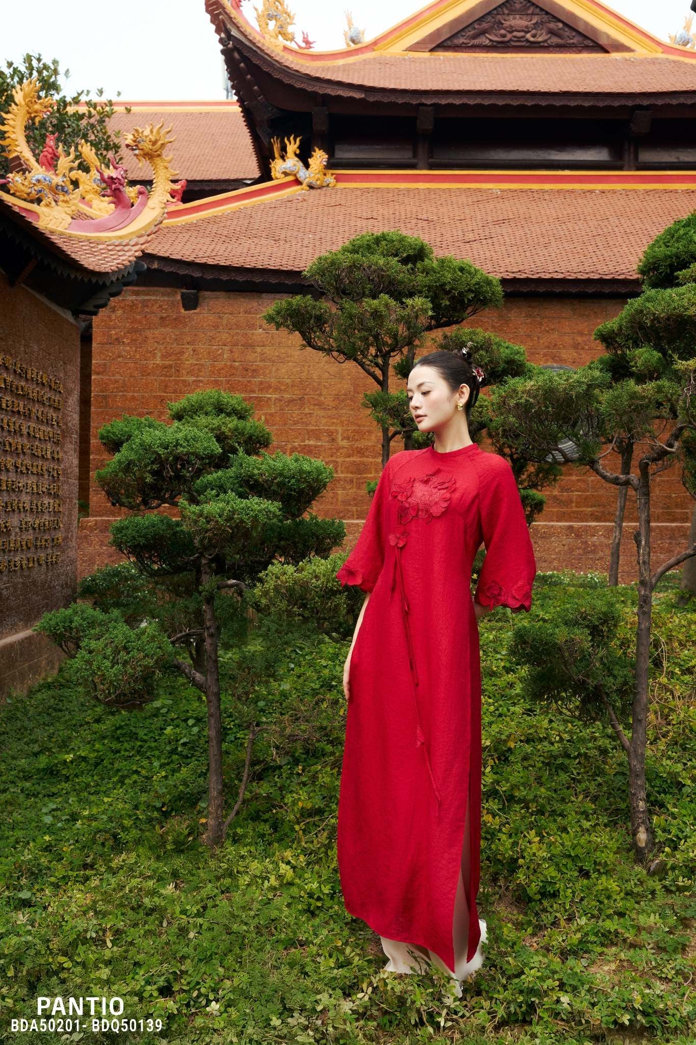 BST Ngọc Vân Niên Hoa tập trung vào phom dáng áo dài suông hiện đại, dễ mặc, tôn dáng và phù hợp với nhiều không gian ngày Tết. Từ áo dài cách tân cổ tàu, tay giác lăng, tay loe, đến những thiết kế hai lớp cổ đổ xẻ V sau cách điệu, mỗi thiết kế đều được xử lý tinh giản nhưng vẫn giữ trọn nét duyên dáng. Bên cạnh đó, Pantio tiếp tục gìn giữ giá trị truyền thống qua các mẫu áo dài cổ tròn, nhấn mạnh vào chi tiết thủ công để tôn vinh vẻ đẹp thuần khiết, nền nã.