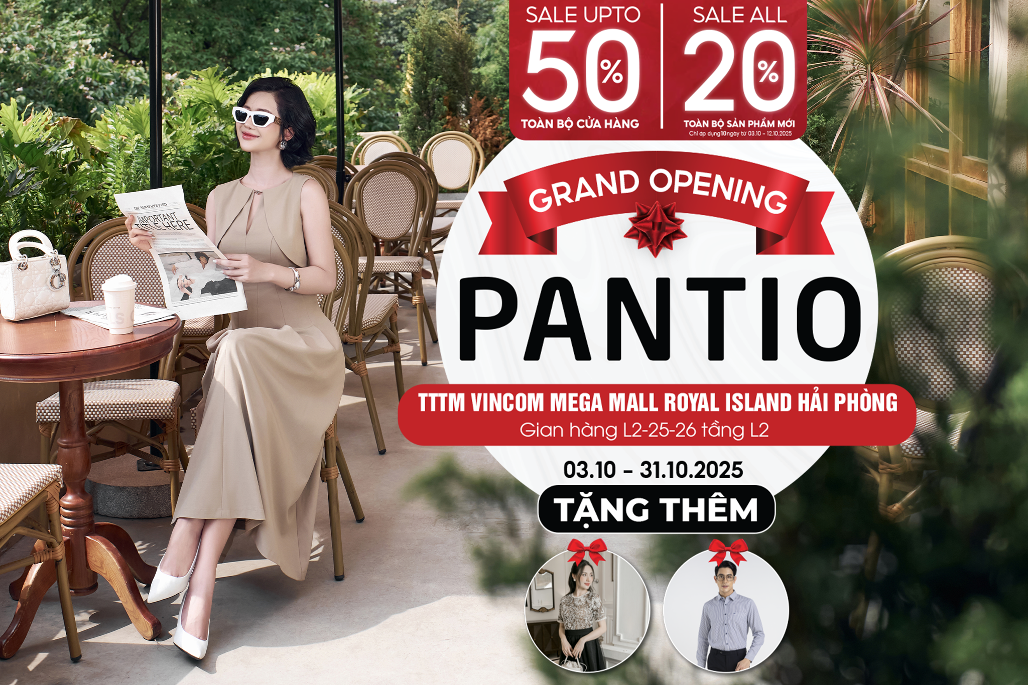 Đánh dấu sự kiện khai trương showroom PANTIO tại Vincom Mega Mall Royal Island, từ ngày 03/10/2025 – 31/10/2025, PANTIO hân hạnh gửi tặng quý khách hàng nơi đây chuỗi ưu đãi đặc quyền cùng hàng ngàn phần quà giá trị vô cùng hấp dẫn: