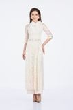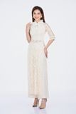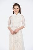 Áo thiết kế độc quyền bởi thương hiệu thời trang cao cấp Pantio. Áo dài được may từ chất liệu ren lưới hoa mềm mại, tạo nên những đường cong cơ thể gợi cảm hơn. Dáng áo suông, tay lỡ, đem đến sự trẻ trung chút gợi cảm cho người mặc, đặc biệt thích hợp cho các dịp lễ Tết, hay sự kiện quan trọng.