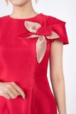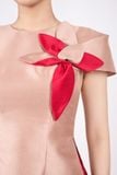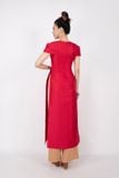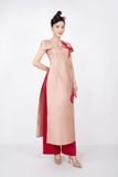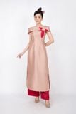BDA70096 - Áo dài cách tân vải tafta dáng ôm cổ tròn đính hoa 3D tay xếp dựng khóa thân sau - PANTIO