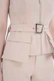 Áo khoác với chi tiết thắt eo cách điệu và tay khoét nách mang tới phong cách sành điệu và chỉn chu hơn cho quý cô hiện đại. Chất liệu vải thô tạo cảm giác thoáng mát cho người mặc, khả năng giữ phom cao, ít nhăn, giữ màu vải cực tốt, có thể giặt giũ thoải mái.