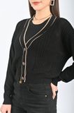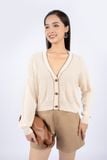 FOL258 - Áo len cardigan dáng rộng tay cánh rơi cài cúc nẹp pha dây kim tuyến - PANTIO