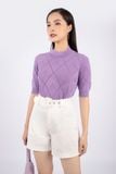 FOL259 - Áo len cao cấp dáng ôm cổ tròn cao dệt họa tiết nẹp bo chun - PANTIO
