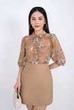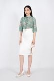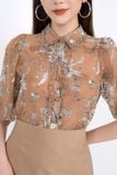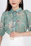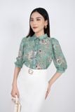 FAK31204 - Áo kiểu công sở vải chiffon dáng suông cổ đức nẹp cổ thân pha bèo tay lỡ - PANTIO