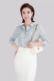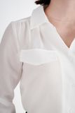Áo sơ mi với chi tiết nắp túi trang trí giúp nàng trẻ trung và năng động. Áo được may từ chất liệu vải tằm cát được xem là một trong những item thời trang không thể thiếu trong tủ đồ của các quý cô, vừa tôn dáng, thanh lịch, sang trọng lại vừa tạo nên những phong cách mới lạ thông qua các cách phối khác nhau. Thành phần vải Polyester 100%