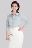 Áo sơ mi cổ hai ve chất liệu tằm cát, nắp túi FAK51148 - PANTIO