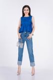 Áo sơ mi chất liệu thô kate cổ tròn sát nách FAS33023 - PANTIO