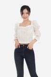 Kiểu dáng áo mới mẻ bằng chi tiết cổ vuông và tay áo nhún chun cách điệu, mang phong cách cổ điển và thanh lịch cho quý cô công sở. Áo sử dụng chất liệu Thô tạo cảm giác thoáng mát cho người mặc, khả năng giữ phom cao, ít nhăn, giữ màu vải cực tốt, có thể giặt giũ thoải mái.