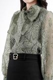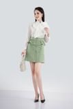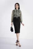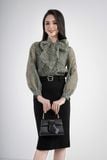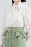 Áo sơ mi tay bồng chất liệu thô dáng suông cổ nơ FAS33087 - PANTIO