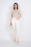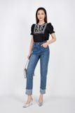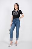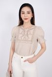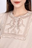 FAS33326 - Áo sơ mi công sở vải linen dáng suông tay bồng thân cổ thêu trang trí - PANTIO