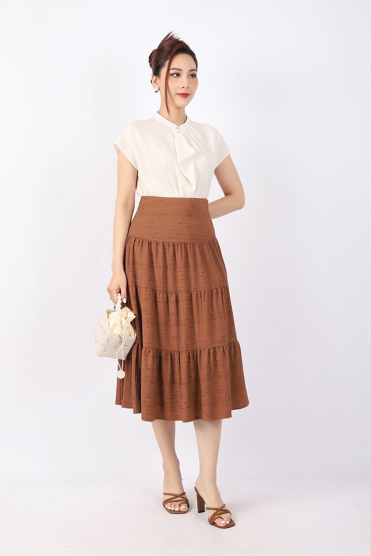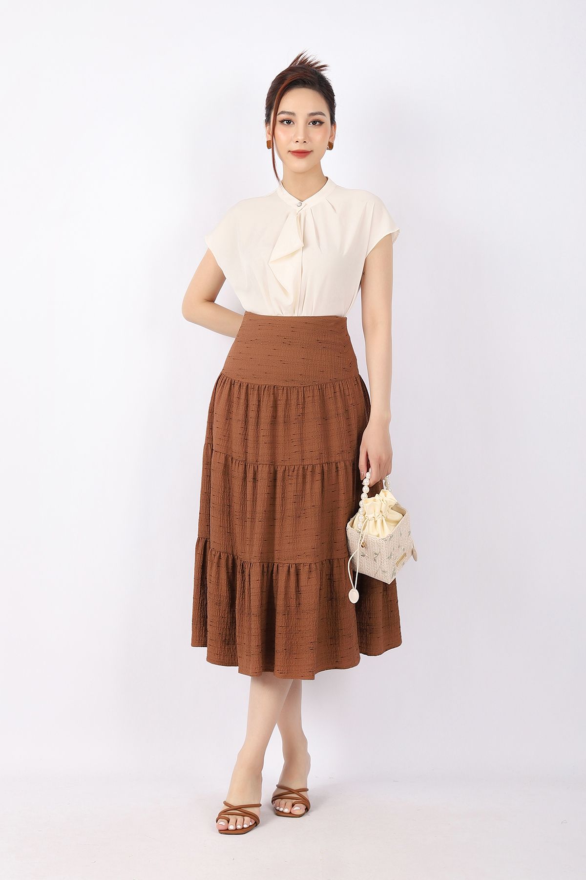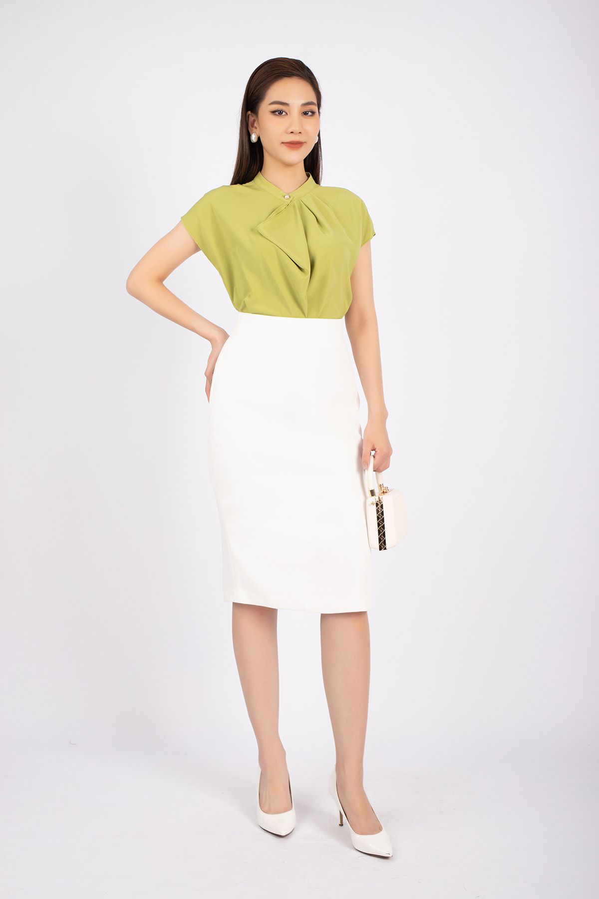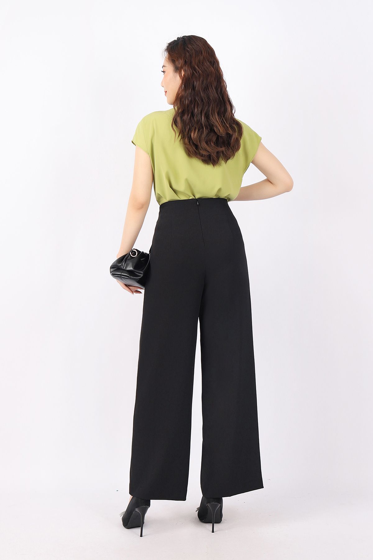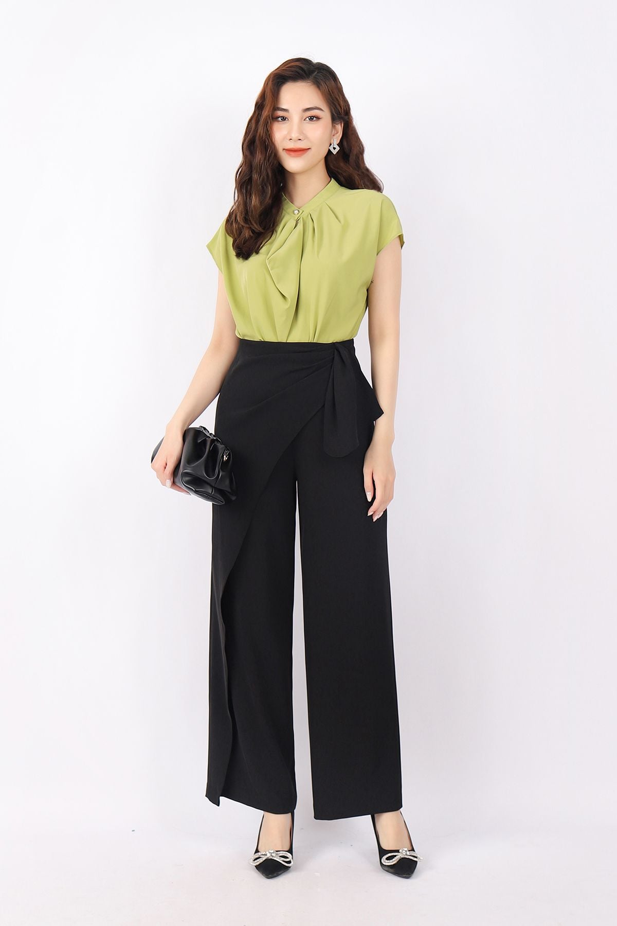 FAS33361 - Áo kiểu công sở vải lụa dáng suông cổ xếp nếp đổ bèo tạo kiểu vai liền - PANTIO