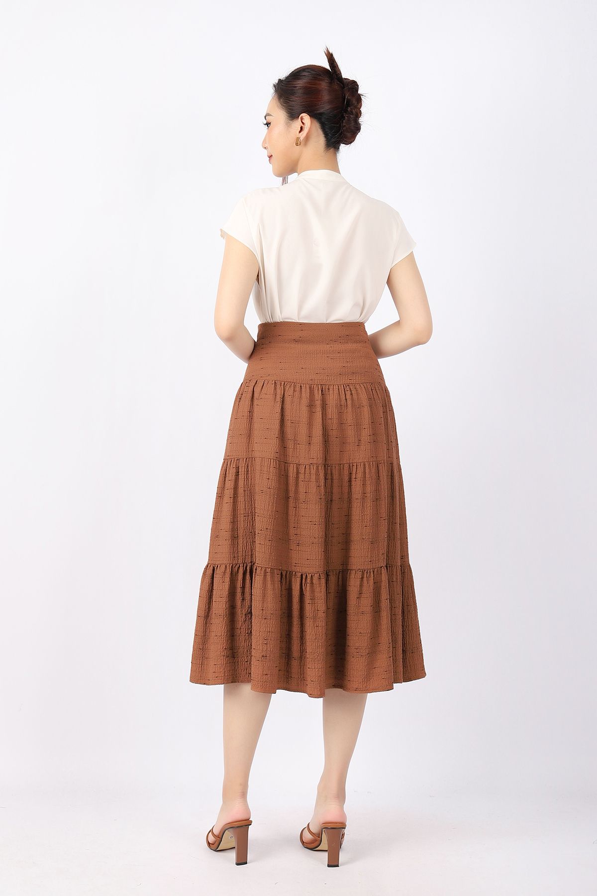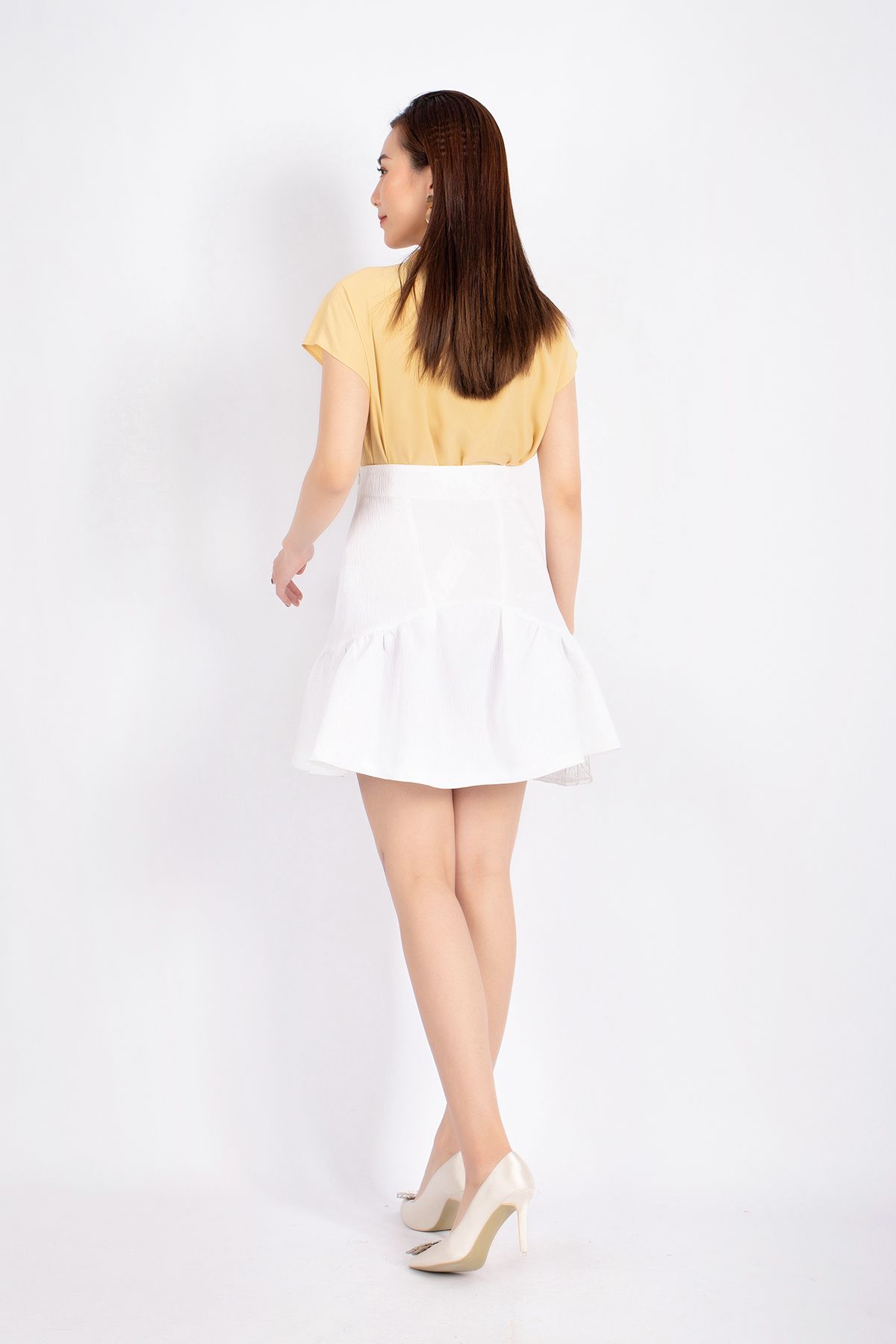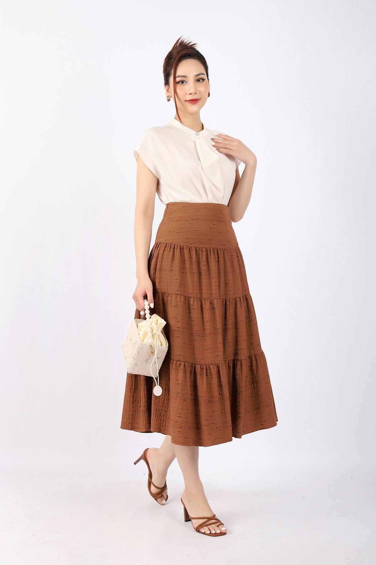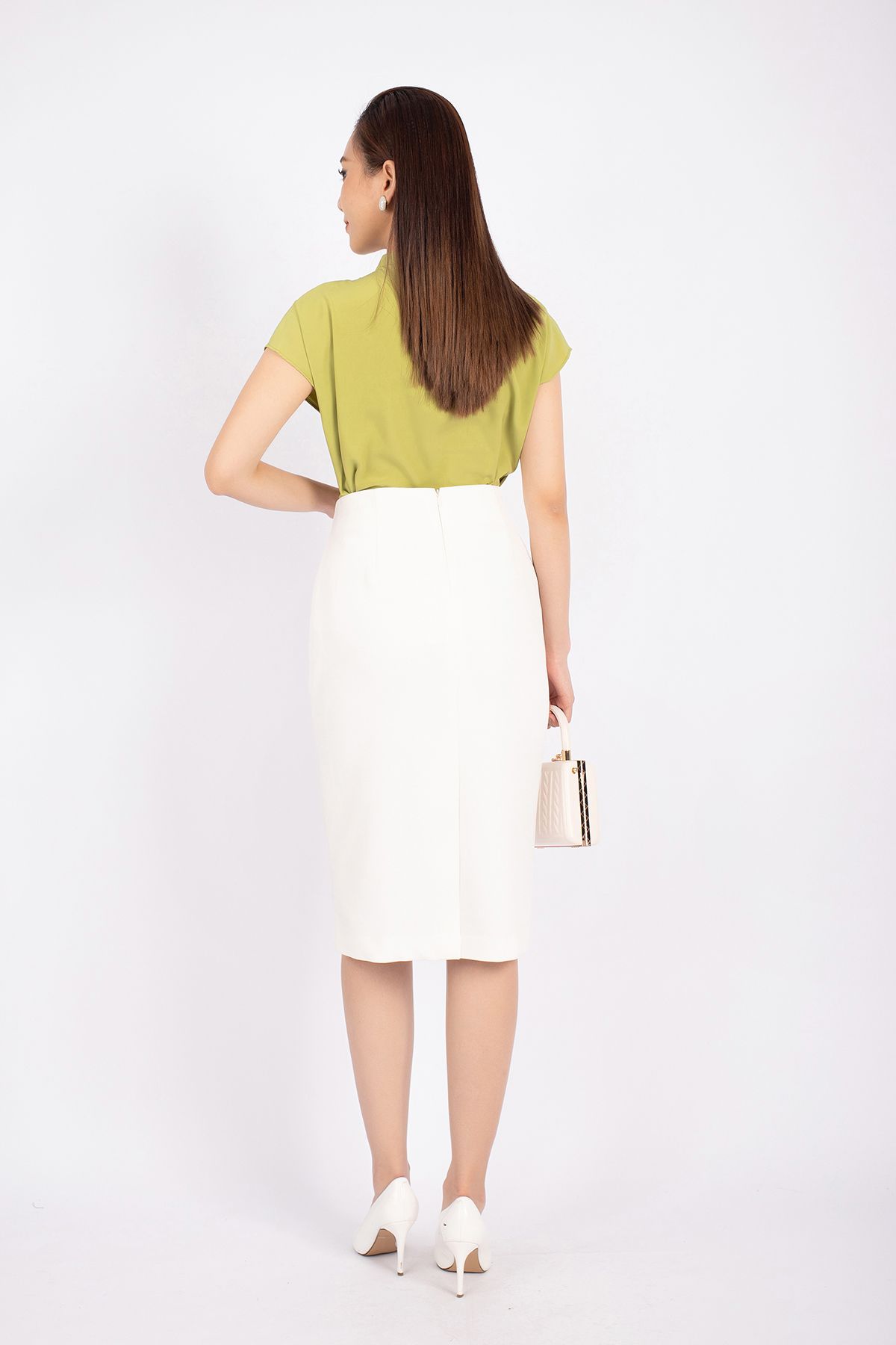 FAS33361 - Áo kiểu công sở vải lụa dáng suông cổ xếp nếp đổ bèo tạo kiểu vai liền - PANTIO