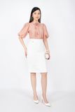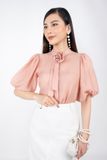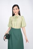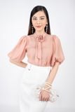 FAS33394 - Áo kiểu công sở vải tơ dáng suông tay bồng hai lớp kèm hoa 3D đính cổ - PANTIO