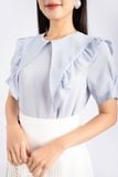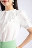 FAS33484 - Áo kiểu công sở vải thô dáng suông lá cổ to phối bèo tạo kiểu - PANTIO