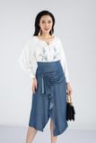 Áo sơ mi chât liệu thô mỏng khuy măng séc tay xếp ly bồng FAS73082 - PANTIO