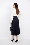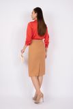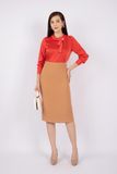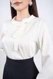 FAS73390 - Áo kiểu công sở vải lụa dáng suông cổ tròn bẻ cách điệu đính cúc ngọc trai trang trí - PANTIO