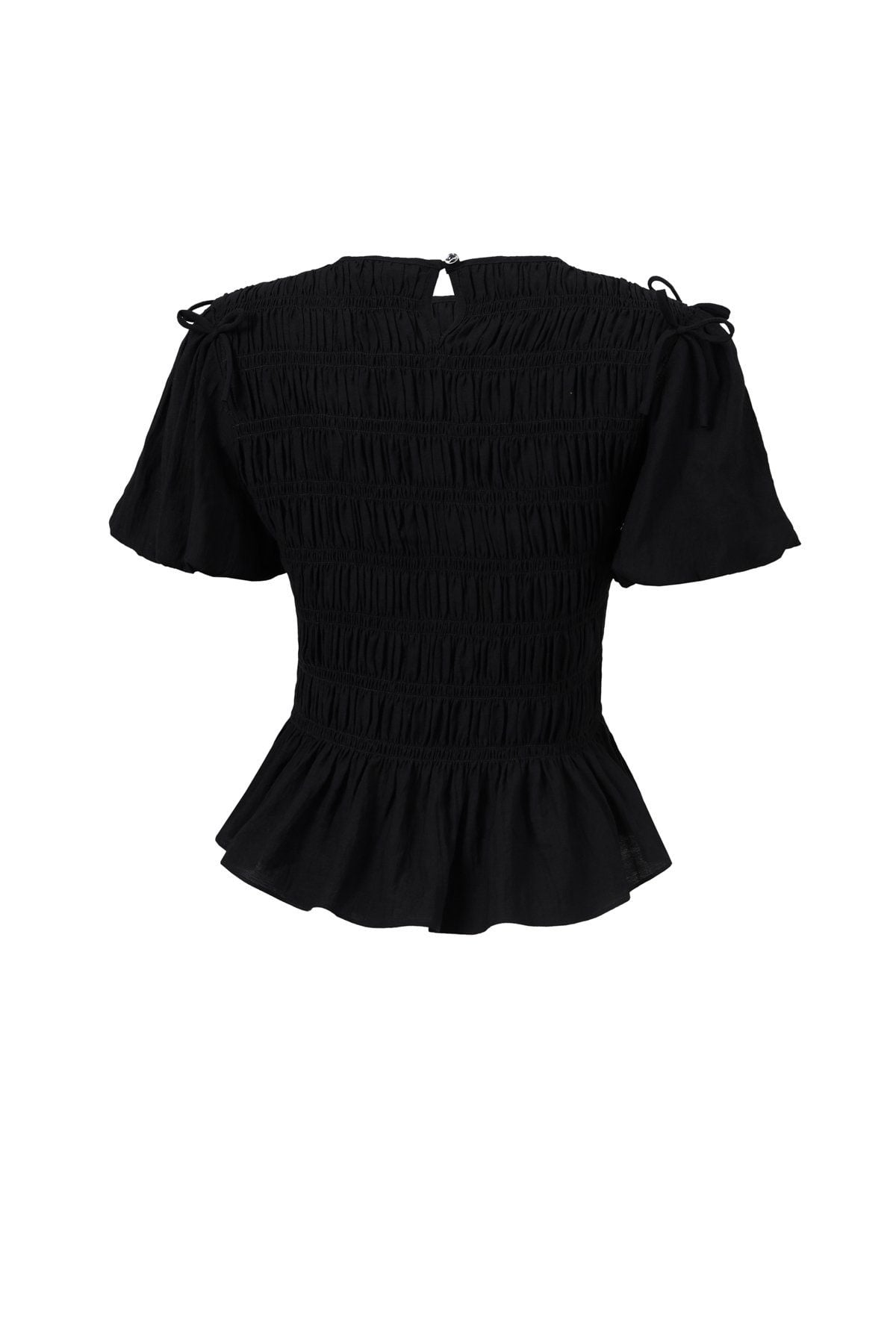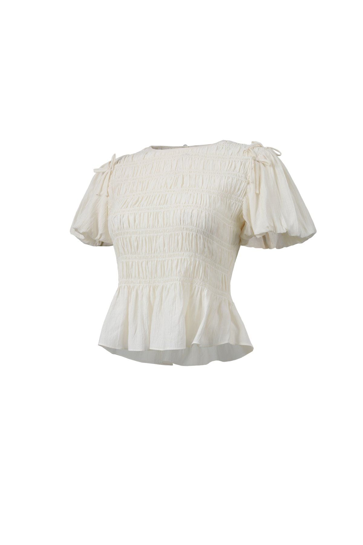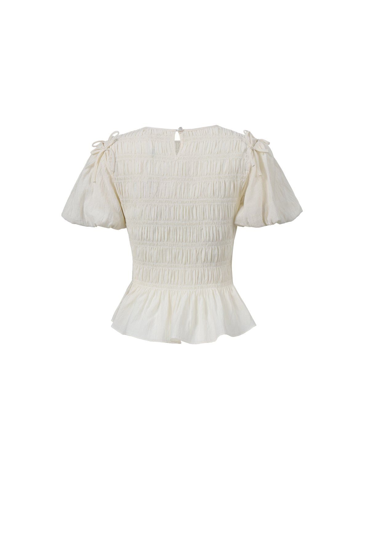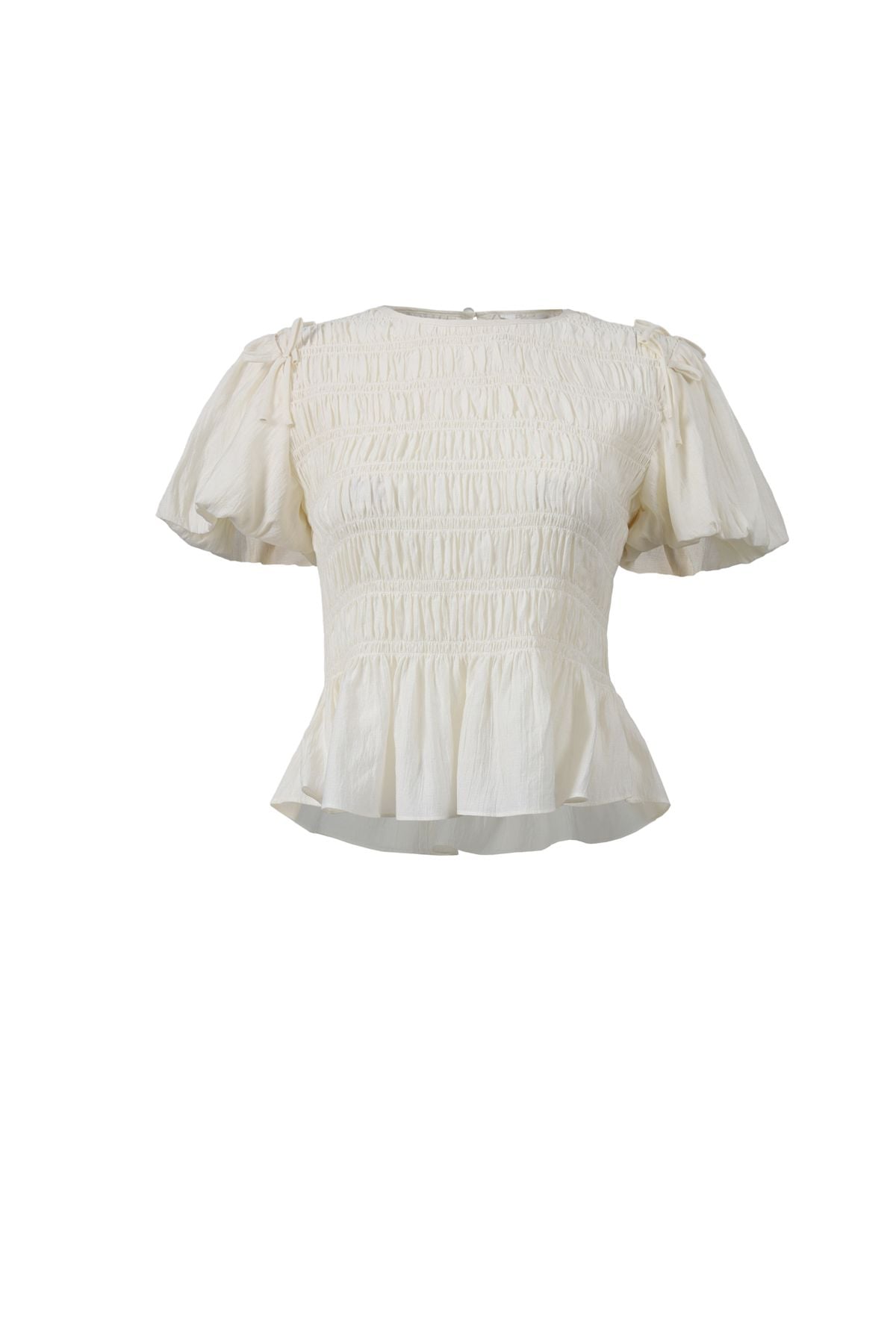 BAK33519 - Áo kiểu dạo phố vải tơ dáng ôm cổ tròn tay bồng thân áo phối chun ôm tạo kiểu - JAN.