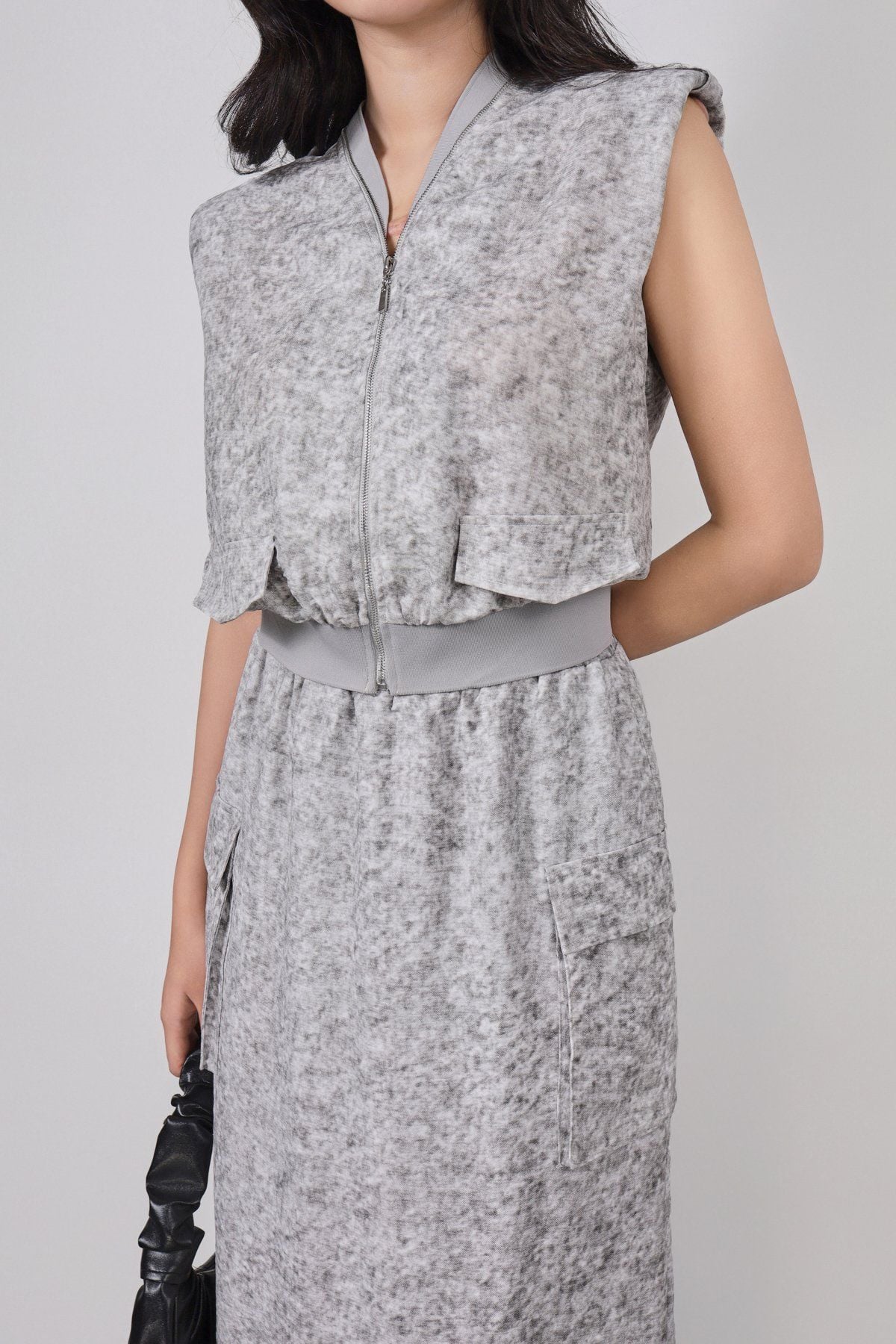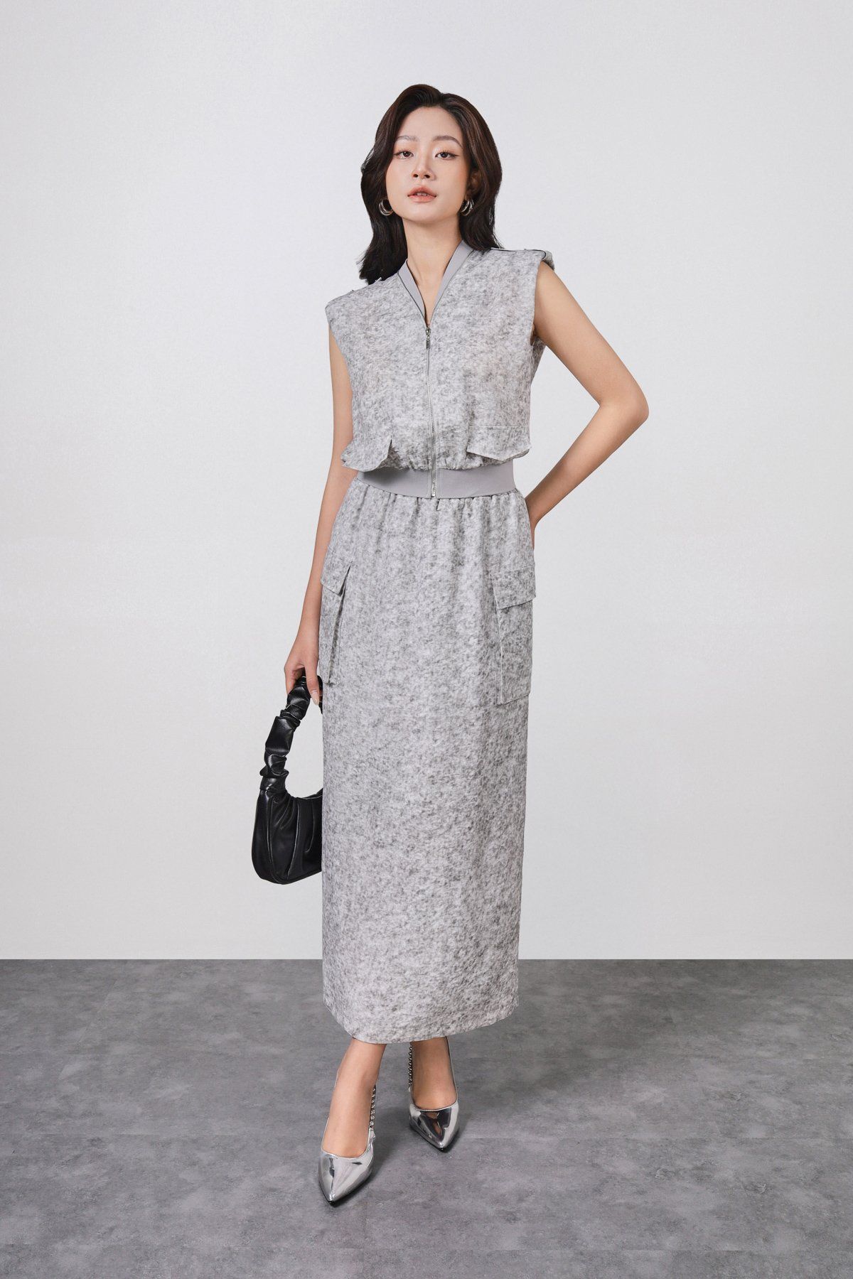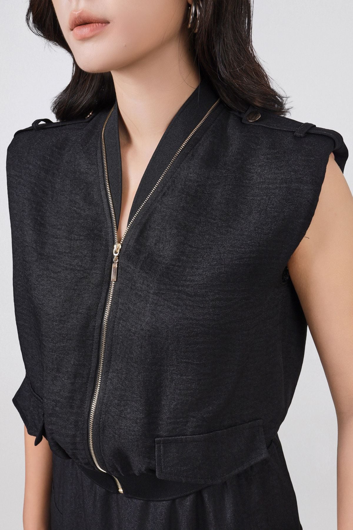 BAK73509 - Áo kiểu công sở vải thô đũi dáng suông tay chờm thân áo phối khóa kim loại gấu áo bo chun ôm thời trang - PANTIO