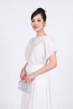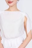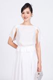 BAS53205 - Áo kiểu dạo phố vải tơ dáng suông cổ thuyền tay cánh tiên xẻ tà thân áo bo chun eo tạo kiểu - PANTIO
