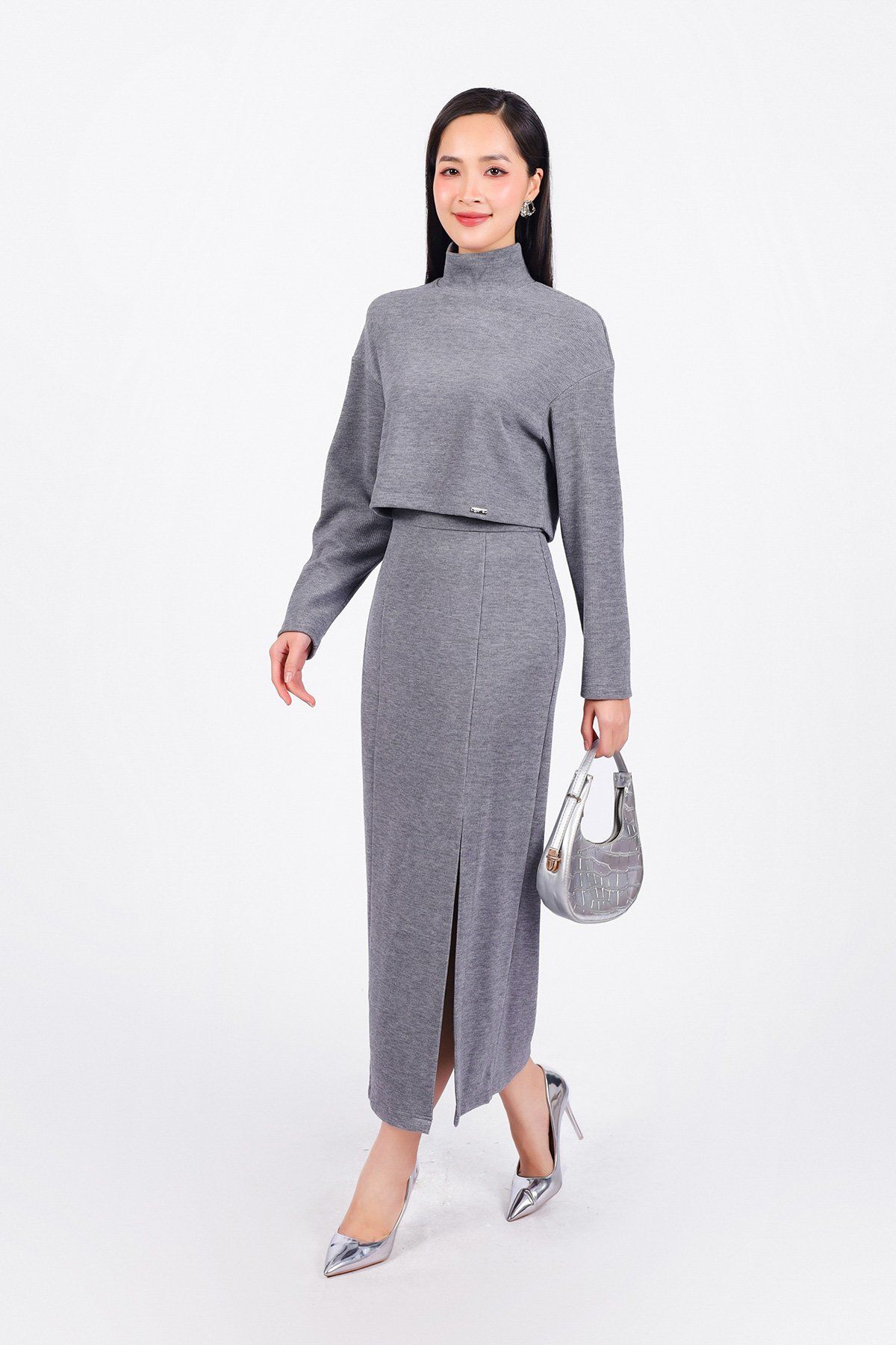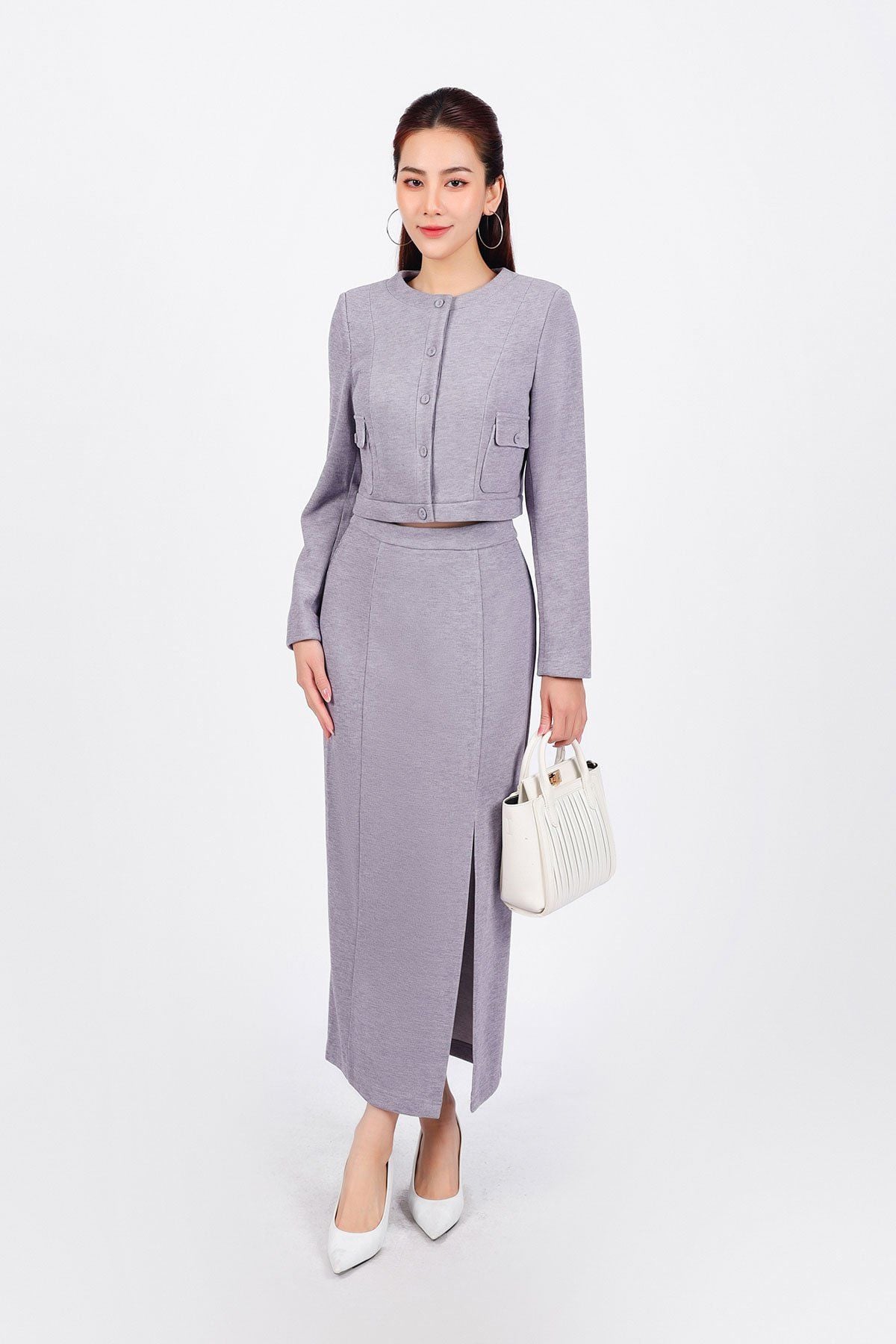 BJD93215 - Chân váy công sở vải nhung dáng suông dài xẻ tà trước khoá thân sau - PANTIO