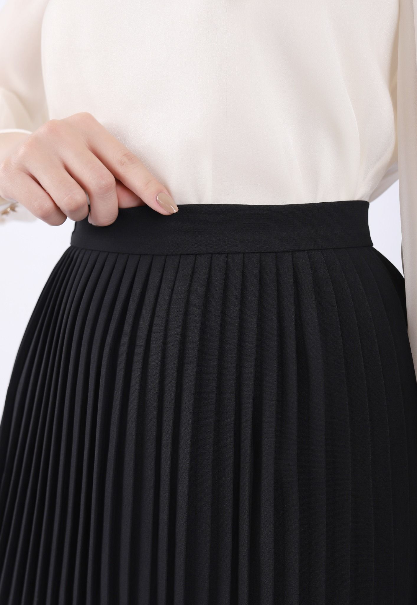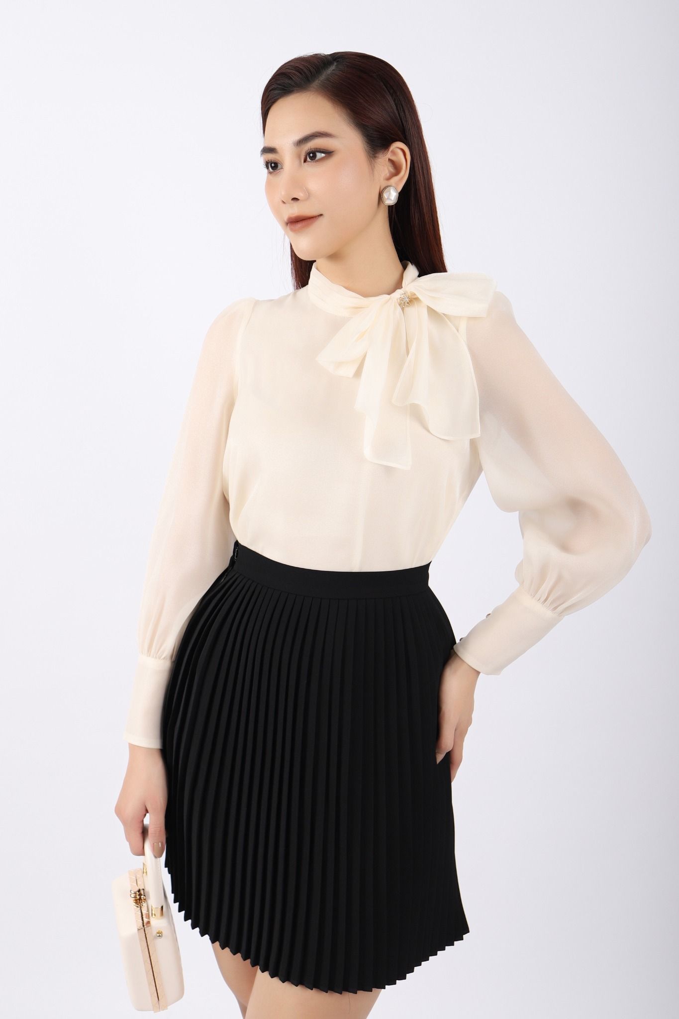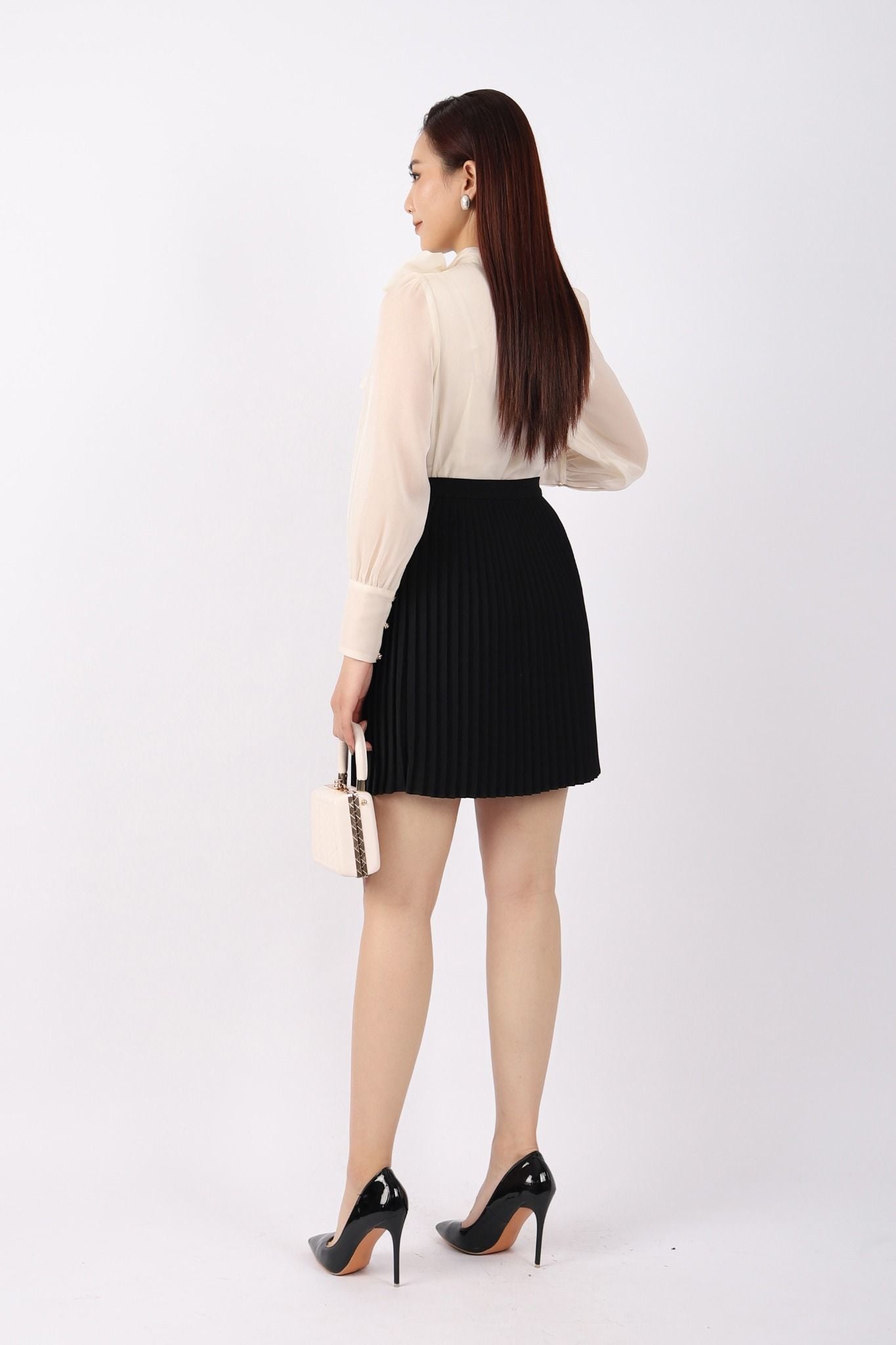BJN72885 - Chân váy công sở vải tuytsi dáng Xoè dập ly khóa thân sau - PANTIO