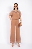 BOL265 - Bộ len cao cấp dạo phố dáng suông áo cổ tròn tay lỡ cánh rơi quần cạp chun ống rộng - PANTIO