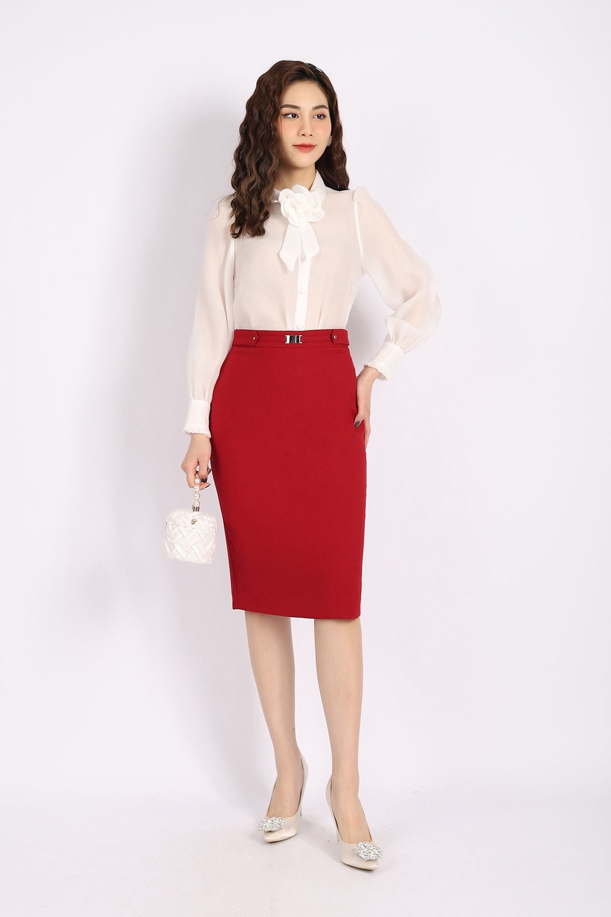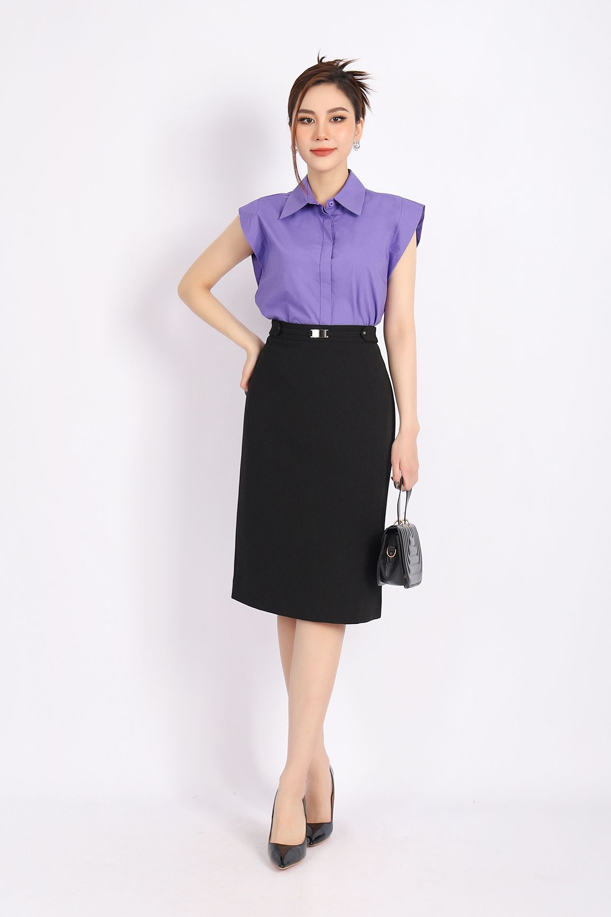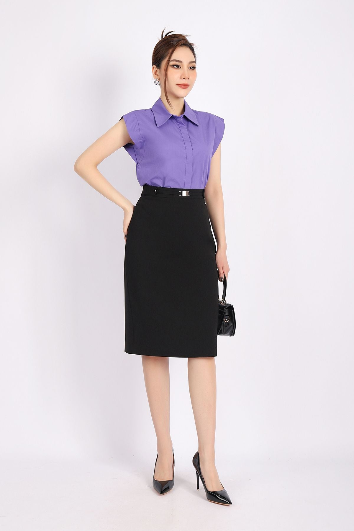 FJD51055 - Chân váy công sở vải tuytsi dáng bút chì cạp phối mặt kim loại trang trí khóa thân sau - PANTIO