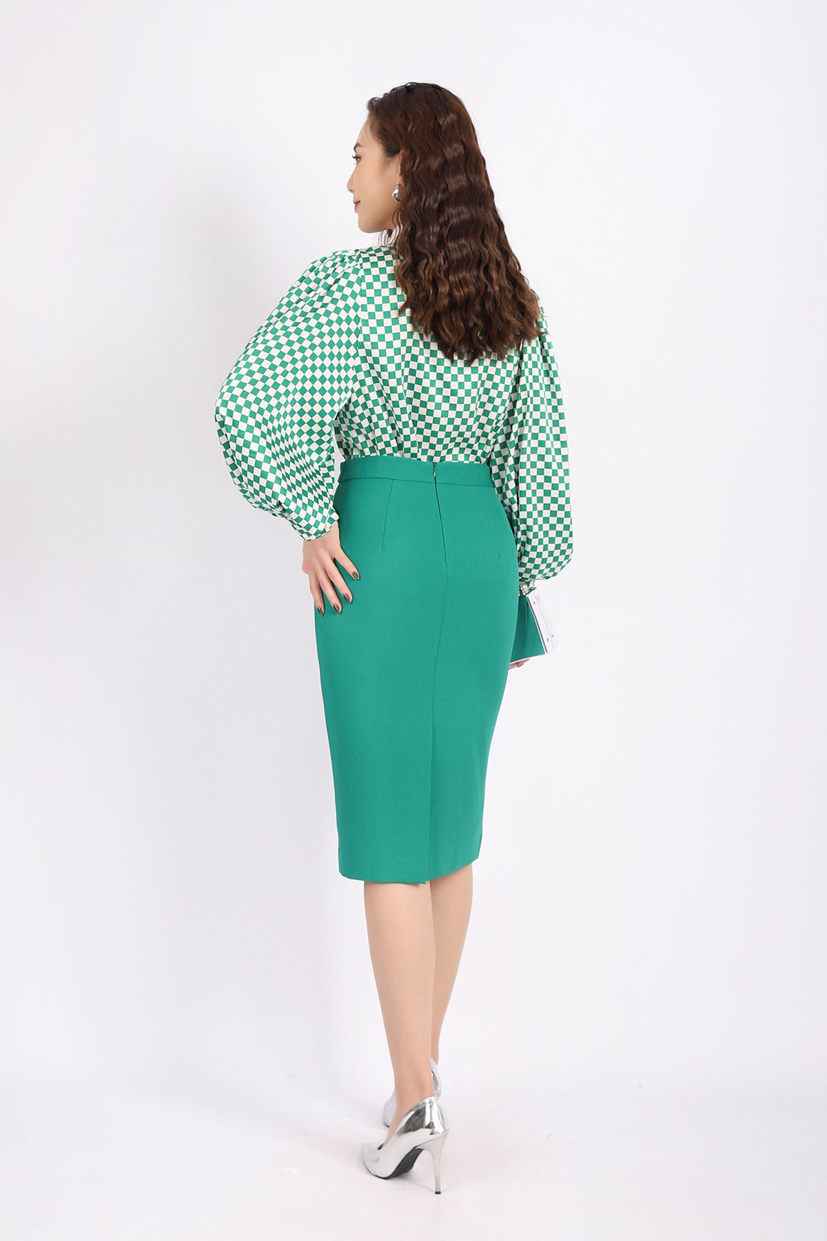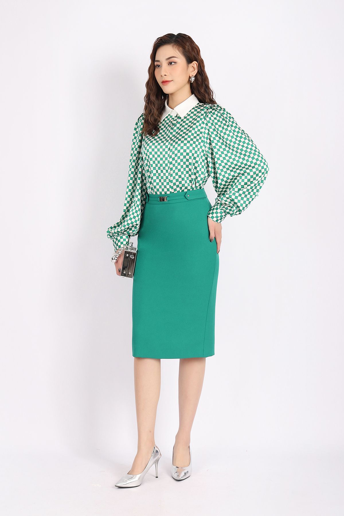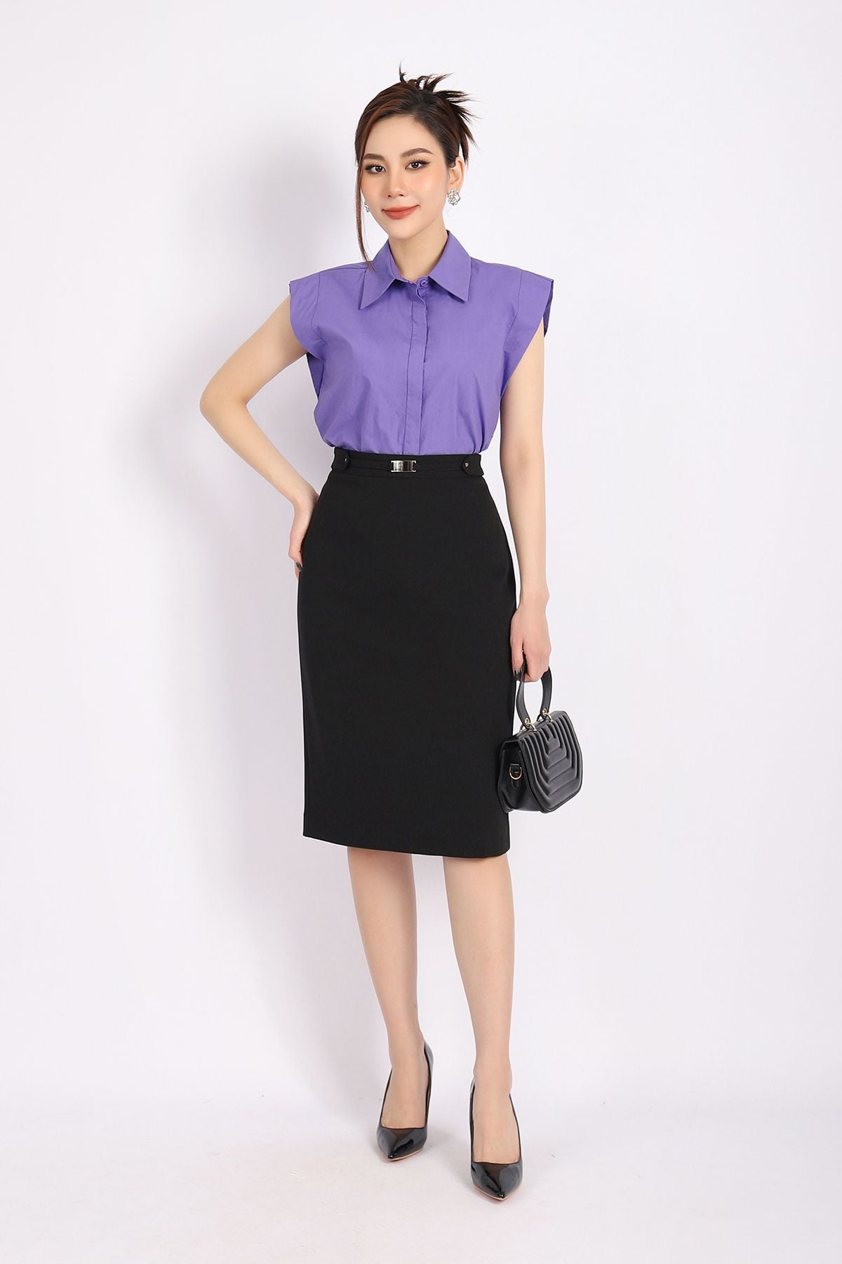 FJD51055 - Chân váy công sở vải tuytsi dáng bút chì cạp phối mặt kim loại trang trí khóa thân sau - PANTIO