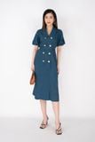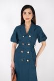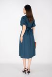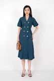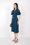FDC33357 - Đầm công sở vải thô dáng A tay nhún bồng khuy và đai trang trí - PANTIO