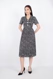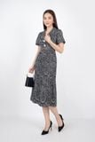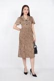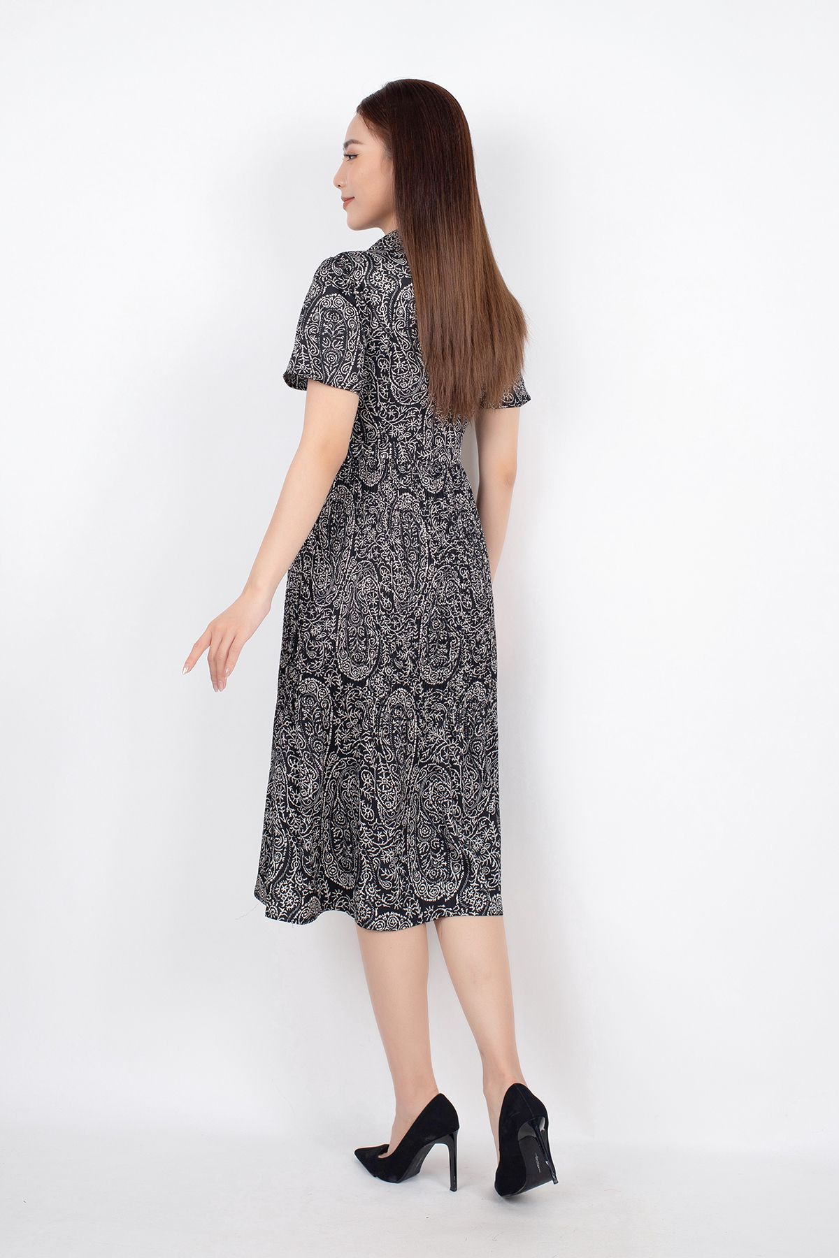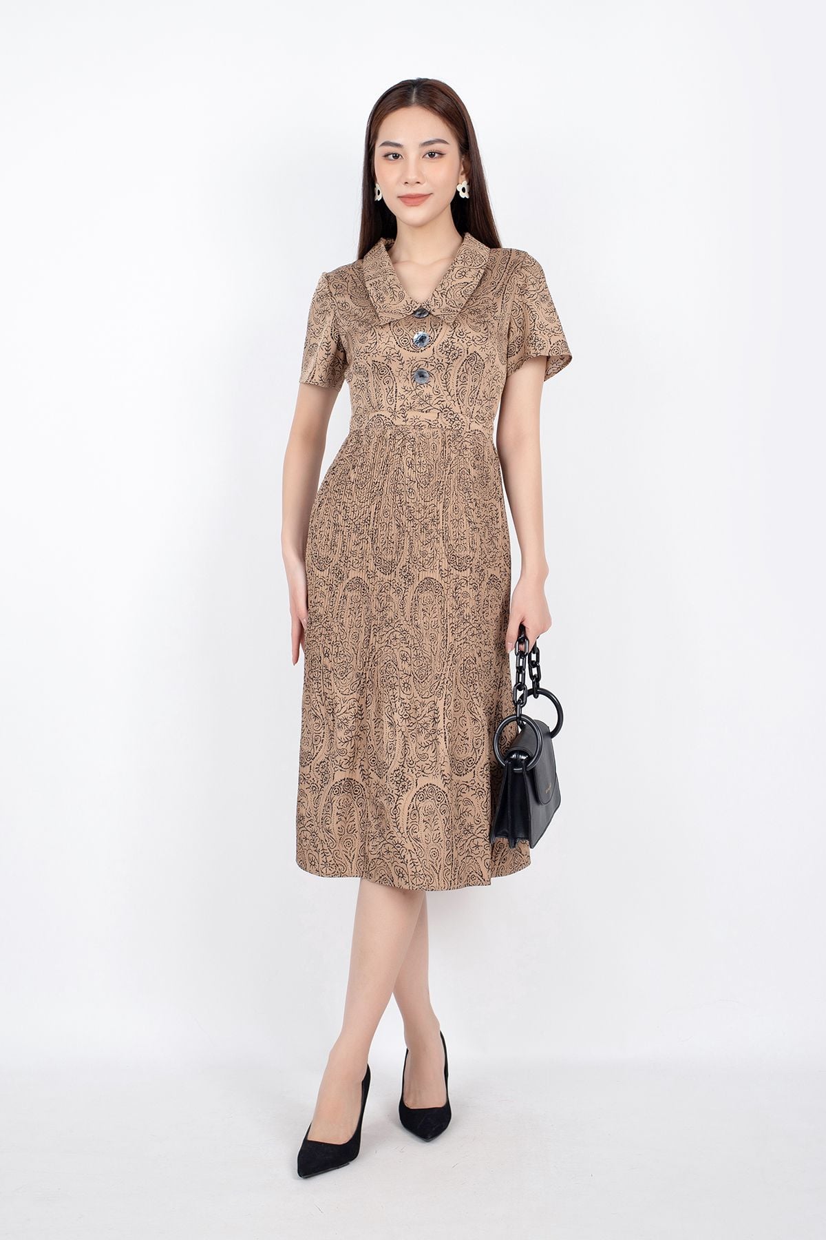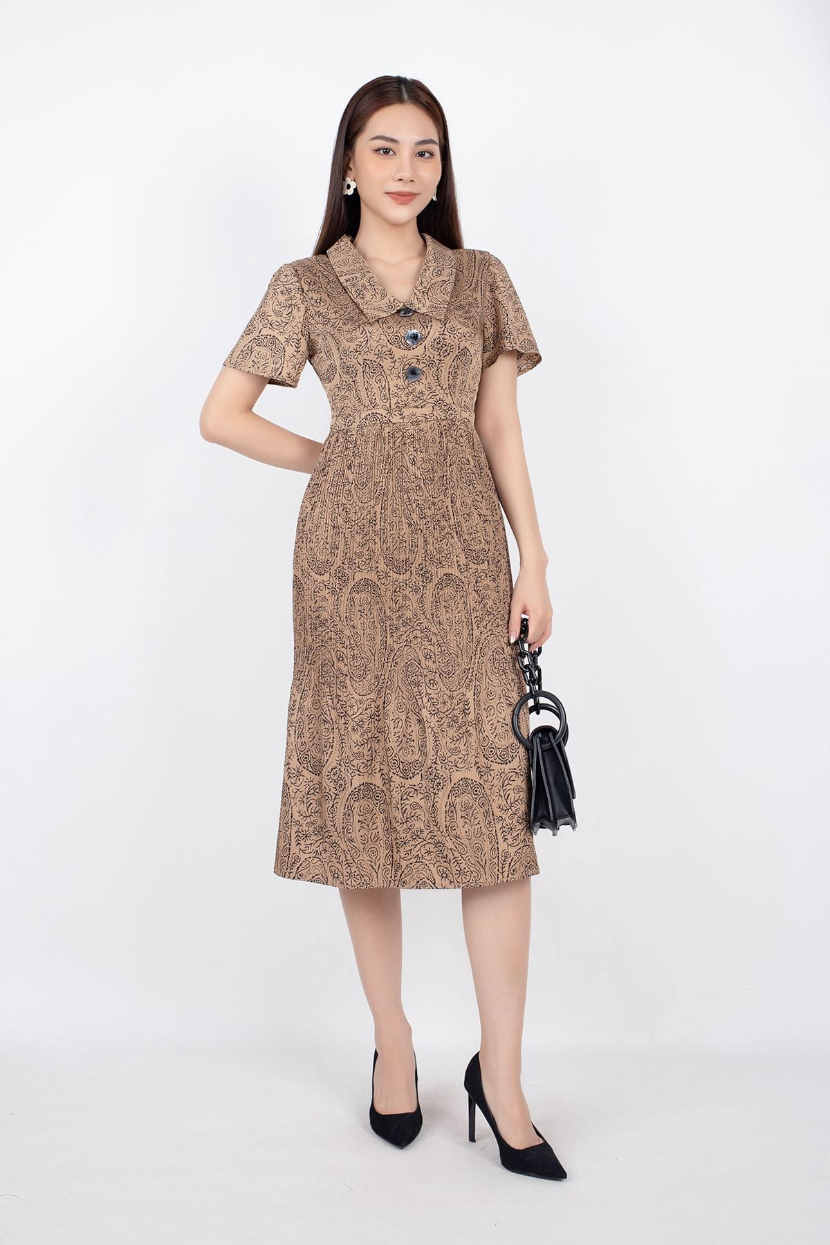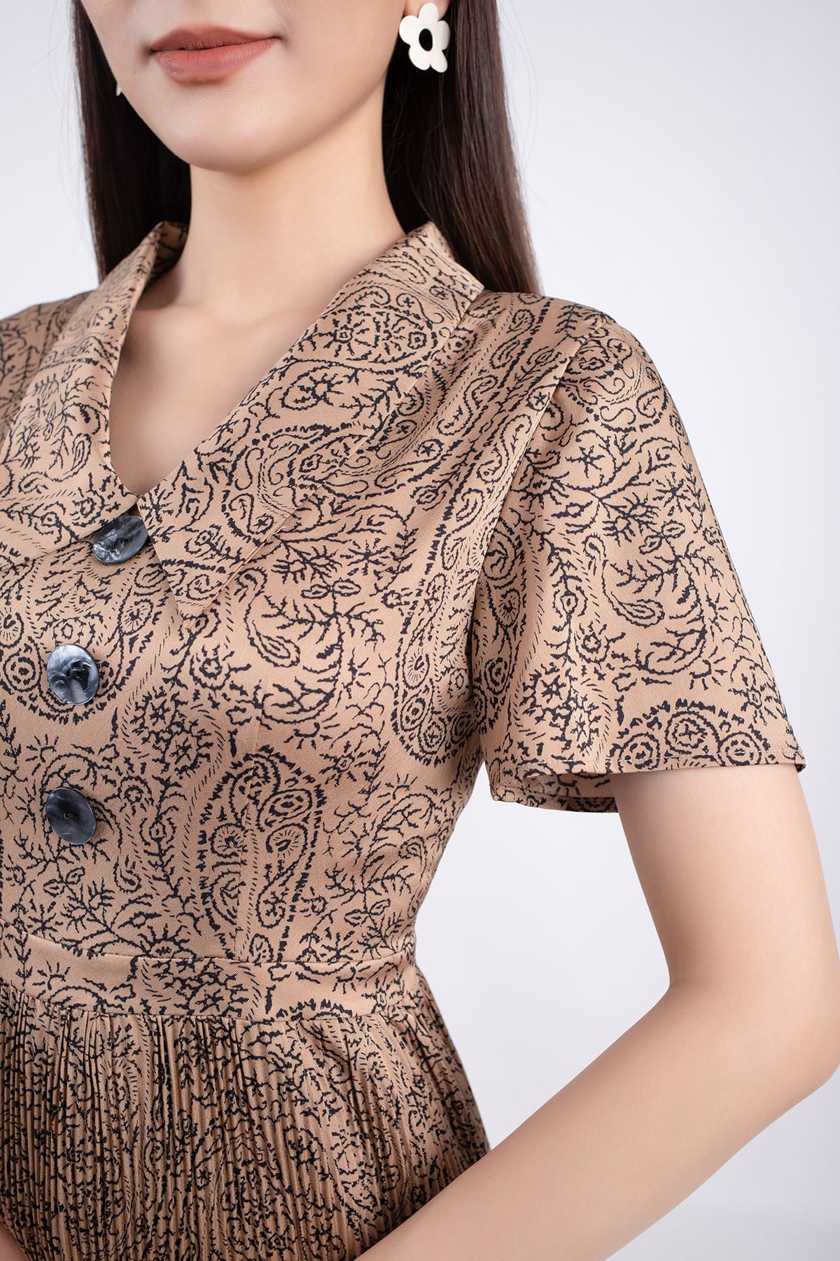FDC33367 - Đầm công sở vải lụa dáng Xoè cổ đức đính khuy trang trí chân váy rập ly - PANTIO