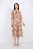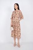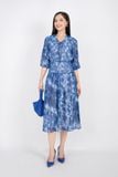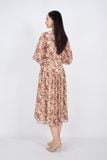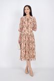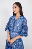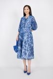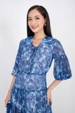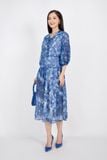 FDC33407 - Đầm công sở vải lụa voan dáng xòe cổ bẻ bản to đan dây tay lỡ bồng hạ dún ngang hông - PANTIO