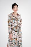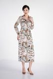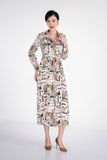 Đầm công sở chất liệu lụa họa tiết đai eo FDC73189 - PANTIO