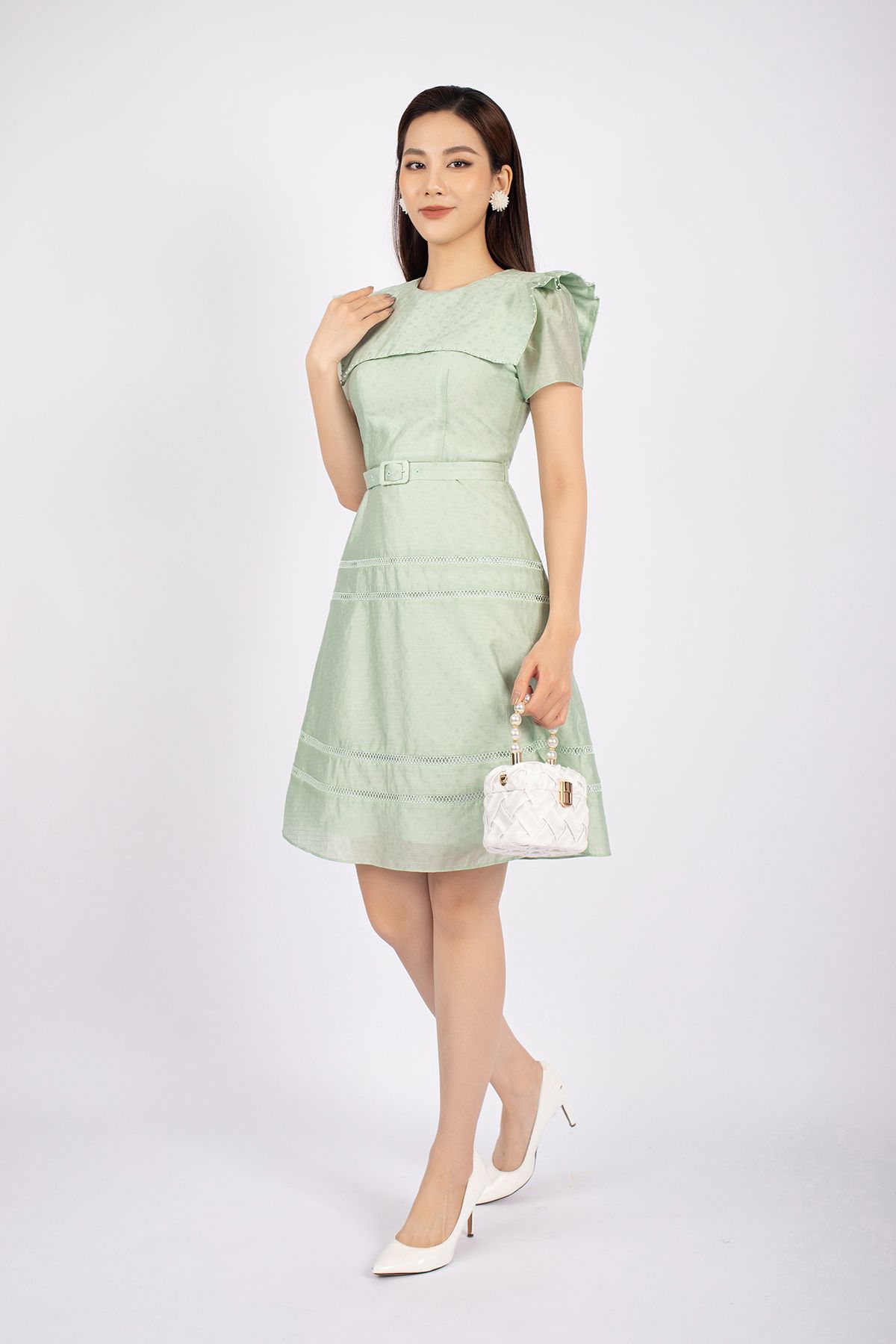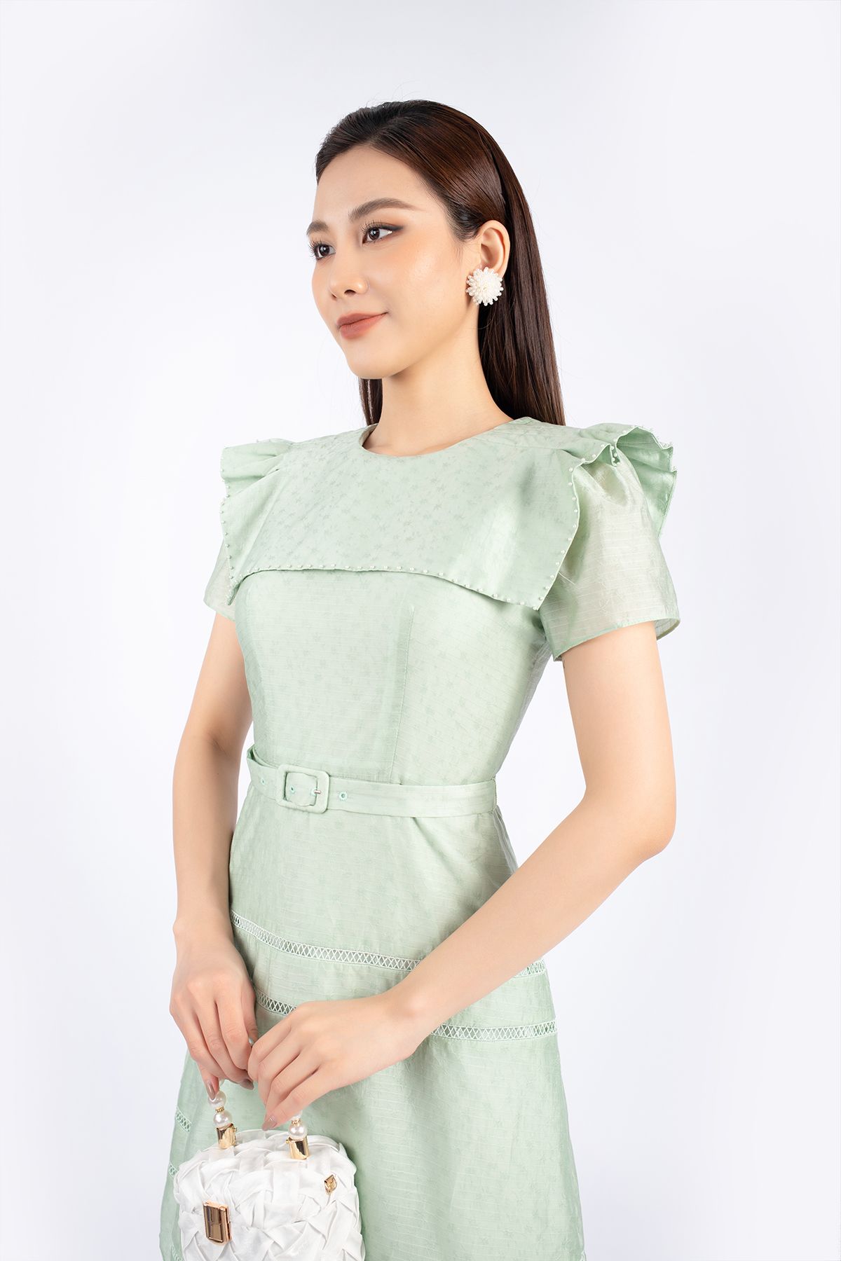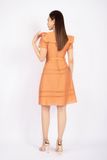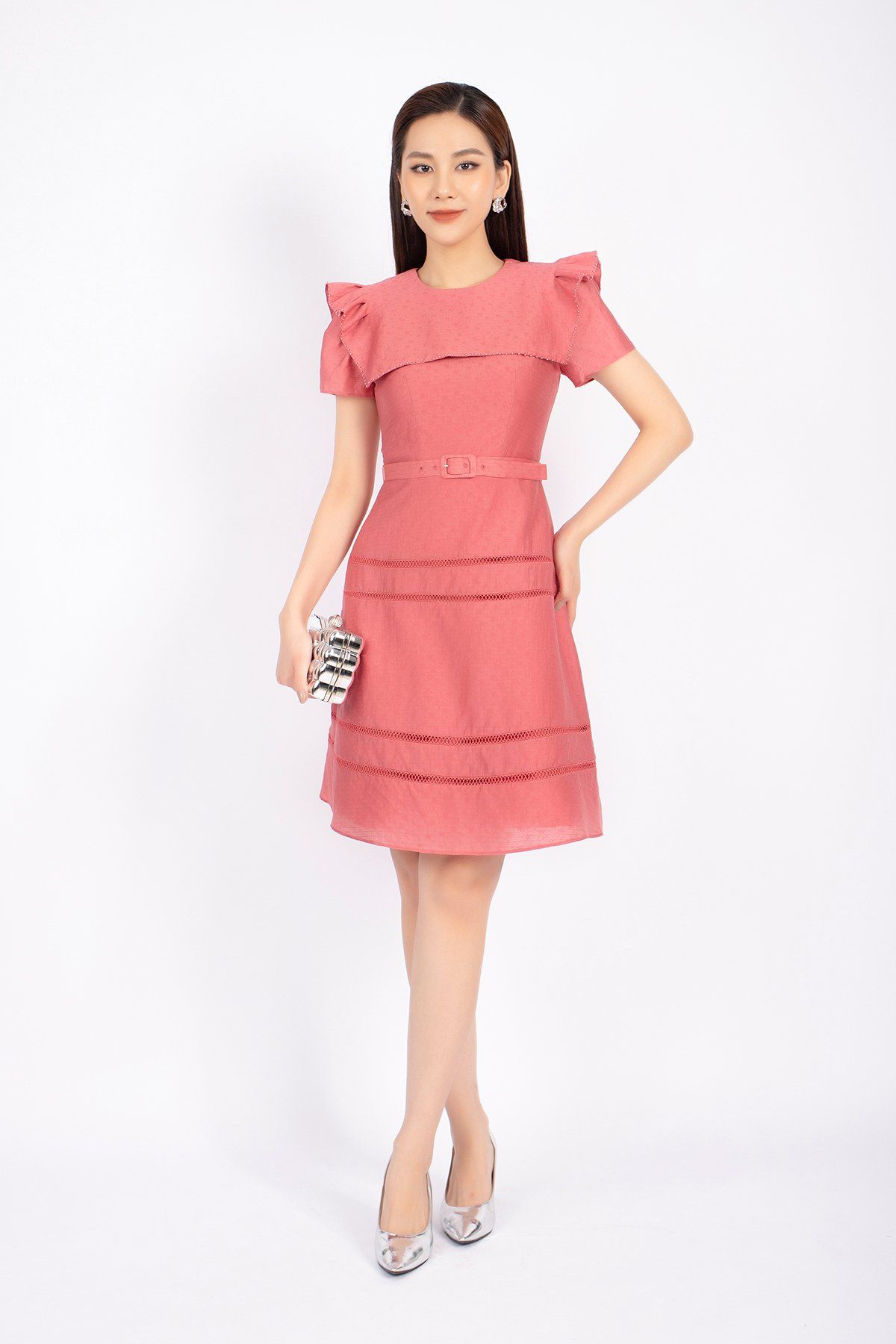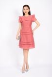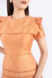 FDC73537 - Đầm công sở vải thô dáng A cổ tròn vai xếp nếp tạo kiểu kèm thắt lưng trang trí - PANTIO