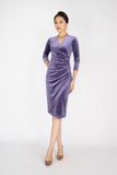 FDC93286 - Đầm công sở chất liệu vải nhung dáng ôm body cổ chữ V, tà chồng xếp ly - PANTIO
