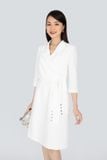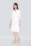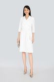 Đầm công sở chất liệu vải thô cổ 2 ve tà chồng vặt lệch tay lỡ FDC93296 - PANTIO