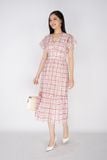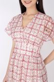 FDP32893 - Đầm dạo phố vải ren dáng xòe cổ V tay xẻ cánh tiên - PANTIO