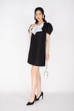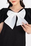 FDP32925 - Đầm dạo phố vải thô dáng A tay bồng cổ V gắn nơ trang trí - PANTIO