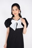 Mang cảm giác bánh bèo là đầm dạo phố dáng A tay bồng cổ V gắn nơ trang trí. Đây là lựa chọn phù hợp cho các nàng trẻ trung, điệu đà xuống phố đi chơi.