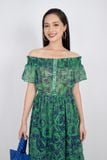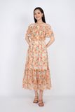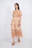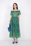 FDP32988 - Đầm dạo phố vải voan dáng maxi vai trễ bo chun nẹp ngực đính khuy - PANTIO