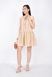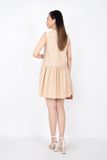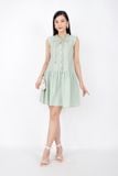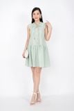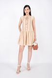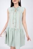 FDP32990 - Đầm dạo phố vải linen dáng Xoè cổ tay xếp bèo thân thêu họa tiết chân váy xếp nếp - PANTIO
