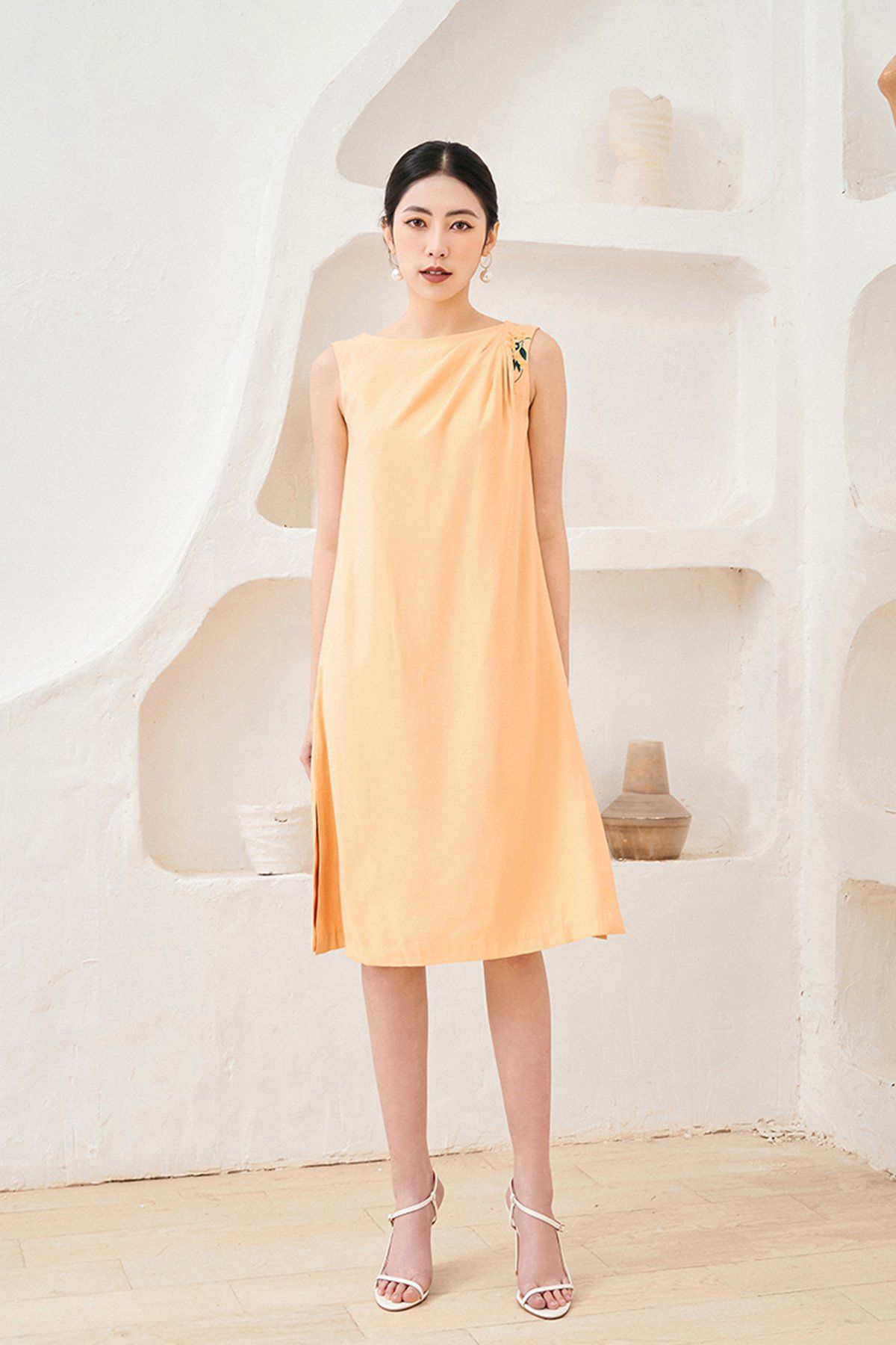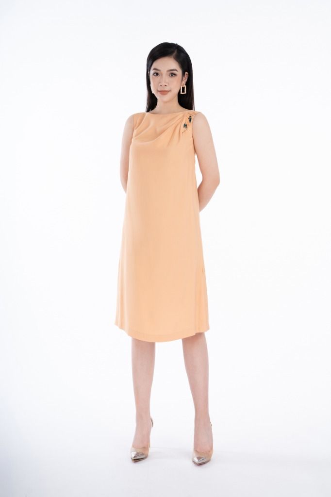 Mẫu đầm dáng suông này được thiết kế không quá cầu kỳ nhưng lại toát được vẻ thời trang sành điệu, đặc biệt là nó giúp chị em che đi những khuyết điểm cơ thể một cách hài hảo. Chất liệu vải thô đũi xốp và nhẹ, không bám dính mồ hôi gây khó chịu nên người dùng sẽ cảm thấy rất thoải mái khi mặc. Thành phần vải: 92% Rayon và 8% Polyester
