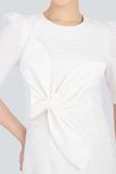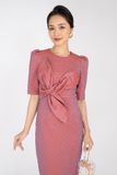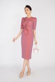 FDP92835 - Đầm dạo phố chất liệu vải thô xốp cố tròn, gắn hoa 3 tay lỡ - PANTIO