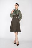 Chiếc đầm dáng xòe kết hợp với sự mềm mại của đường nét xếp ly giúp chiếc đầm trở nên sang trọng và chỉnh nếp cực tốt. Những đường nếp ly bản trung dù được lồng ghép vào kiểu dáng nào với mật độ thưa hay mau cũng đều tạo nên sự phong cách và hiện đại. Với kiểu dáng xòe ở chân cùng phần trên ôm sát cơ thể khiến cho người mặc một sự dịu dàng, nữ tính và đáng yêu vô cùng. Chất liệu vải cotton có khả năng giữ phom cao, ít nhăn, giữ màu vải cực tốt, có thể giặt giũ thoải mái. Thành phần vải: 98% polyester - 2 % spandex