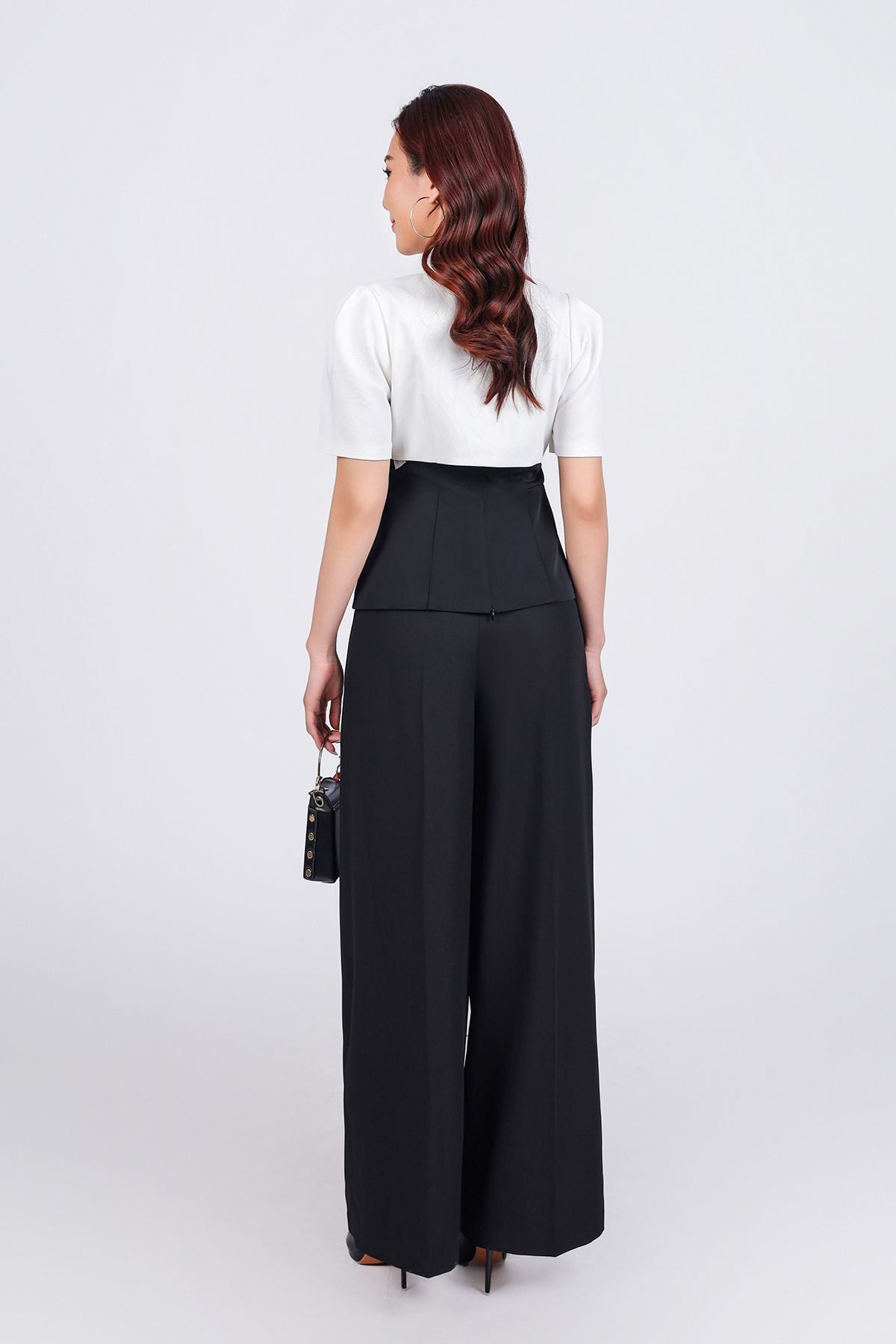 FAK11350 - Áo kiểu công sở vải tuytsi dáng ôm cổ kiểu đính khuy đá cao cấp vai bồng nhẹ khoá thân sau - PANTIO