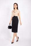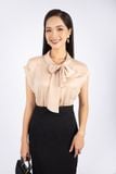 FAS33331- Áo kiểu công sở vải lụa dáng suông cổ tròn gập buộc nơ tay liền vai chờm - PANTIO
