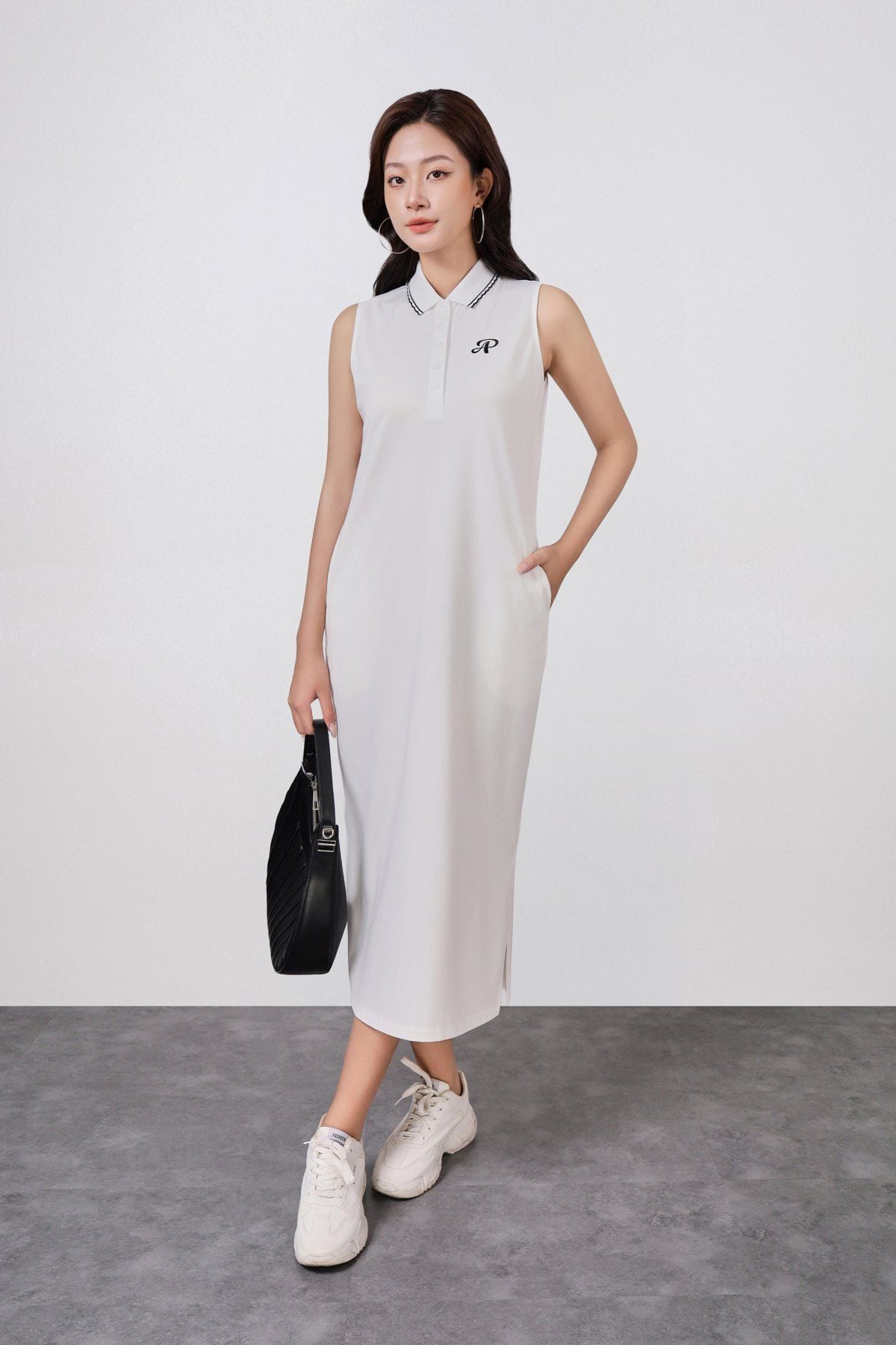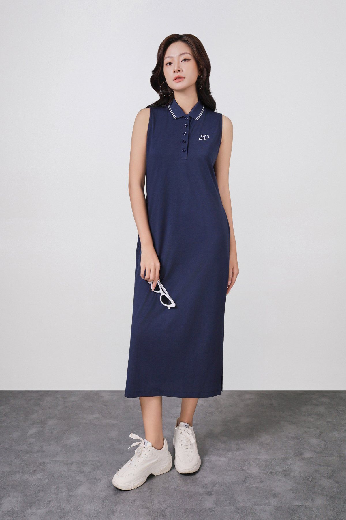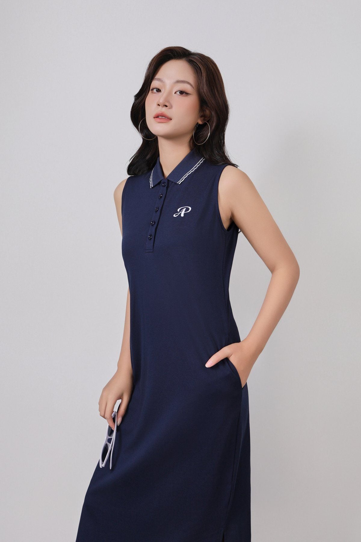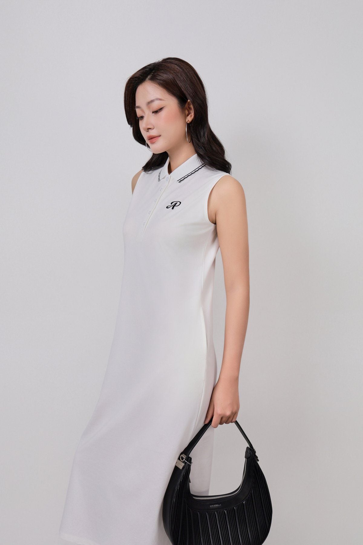 FDD3191 - Đầm dệt kim vải cotton cao cấp dáng suông cổ polo không tay ngực áo thêu hoạ tiết thời trang - PANTIO
