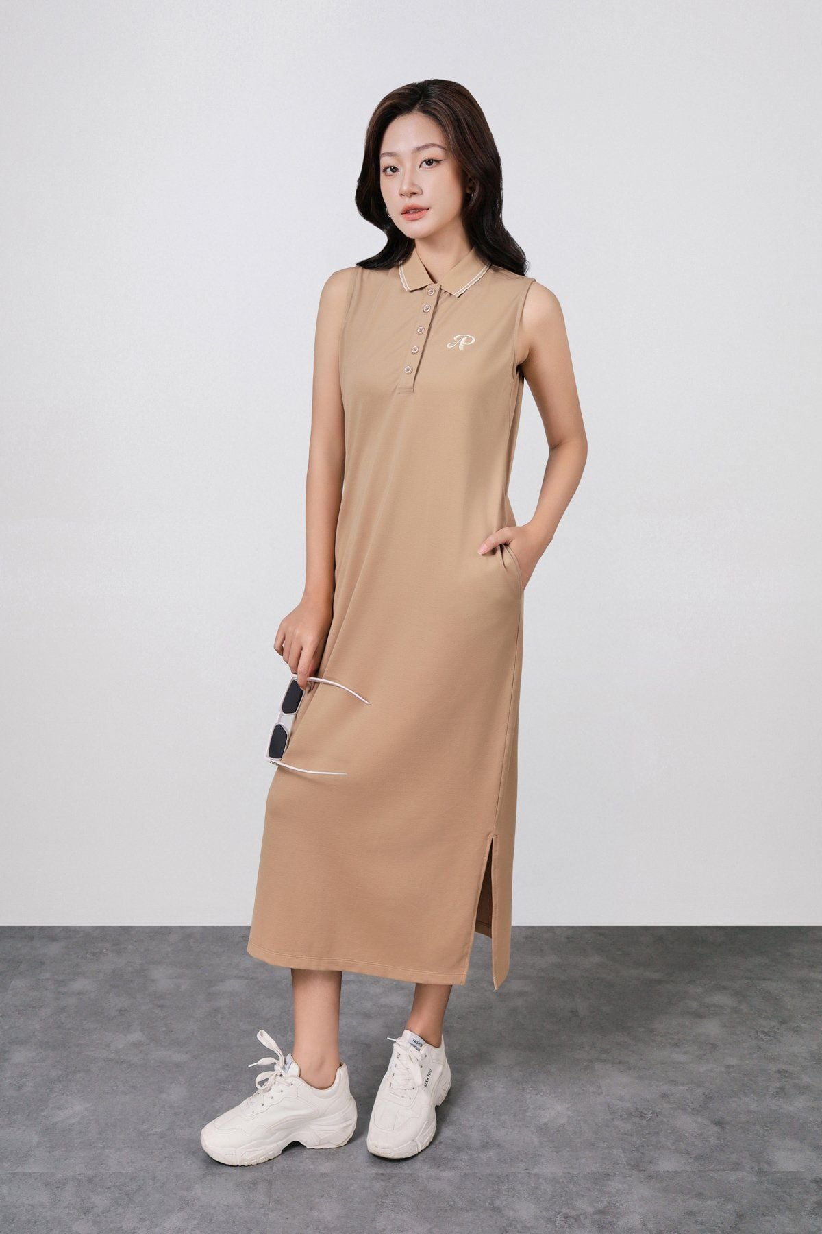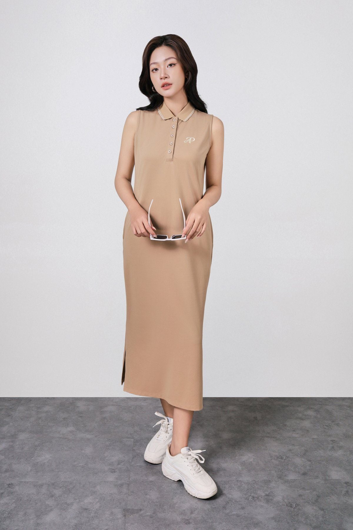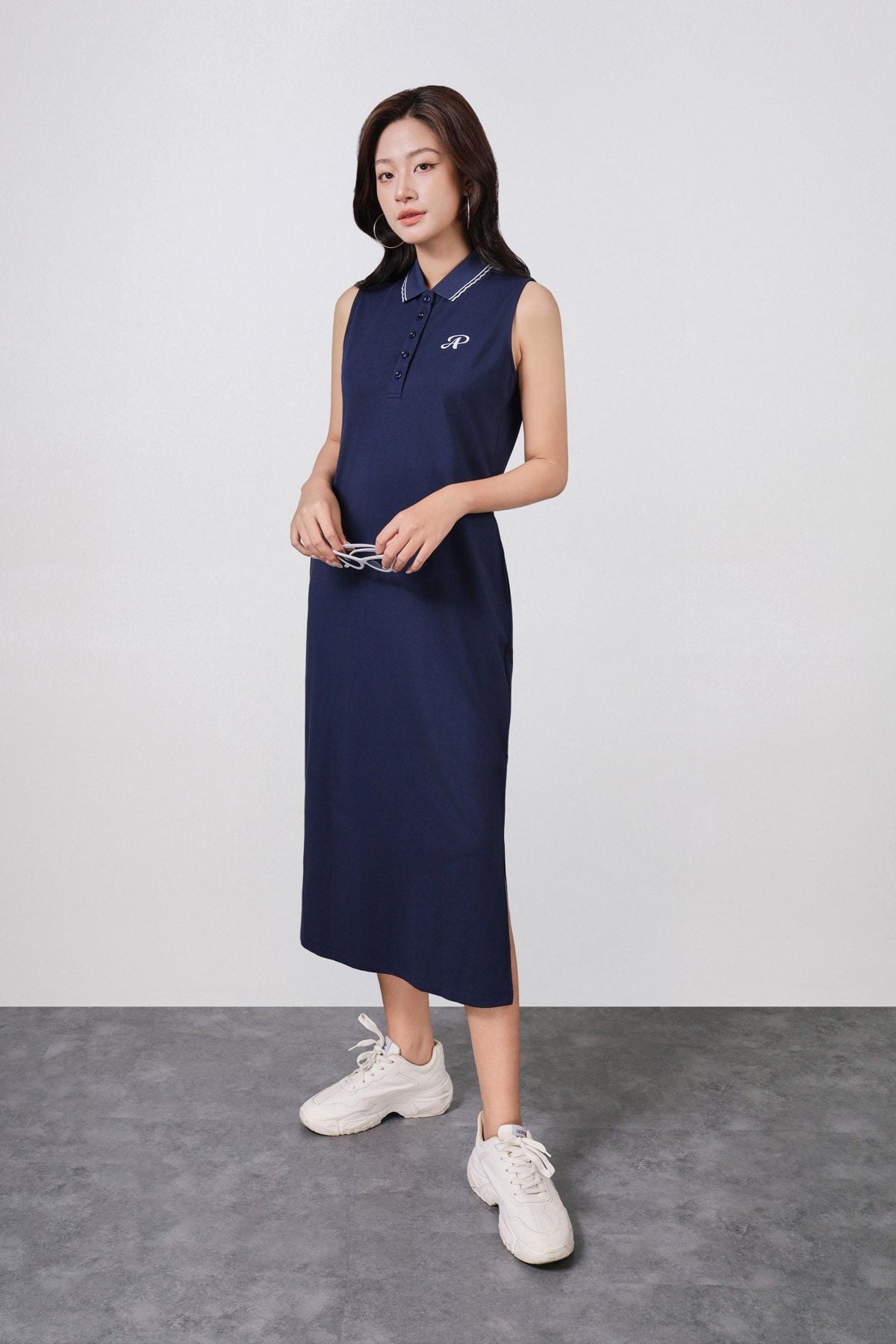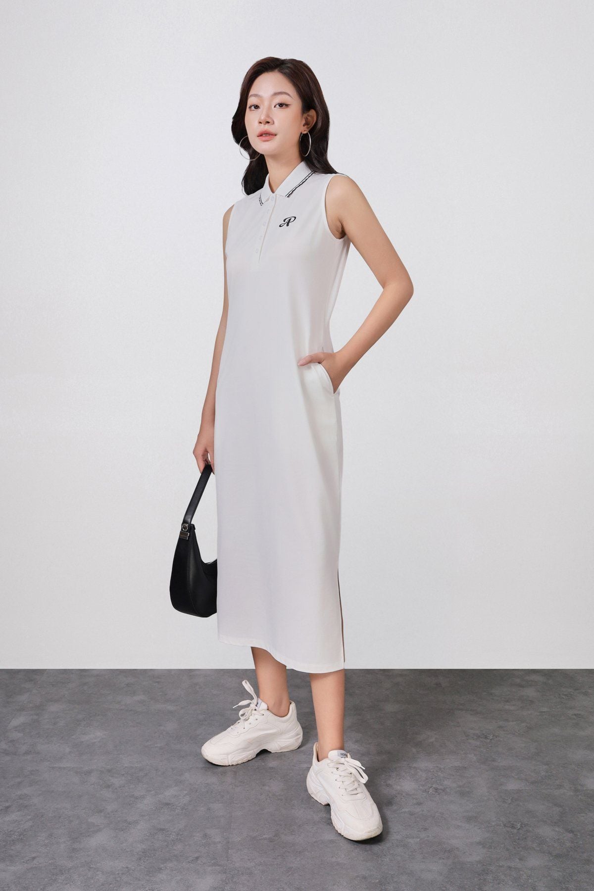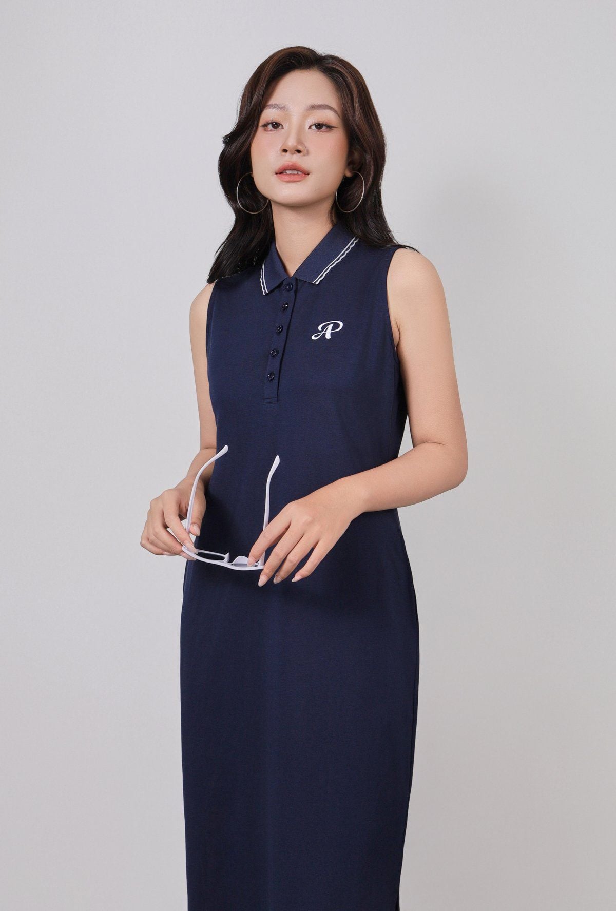 FDD3191 - Đầm dệt kim vải cotton cao cấp dáng suông cổ polo không tay ngực áo thêu hoạ tiết thời trang - PANTIO