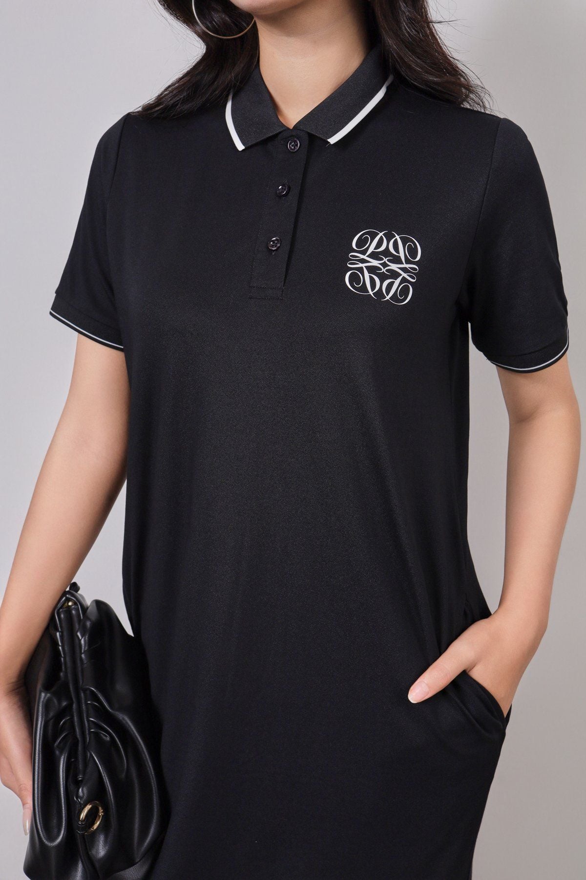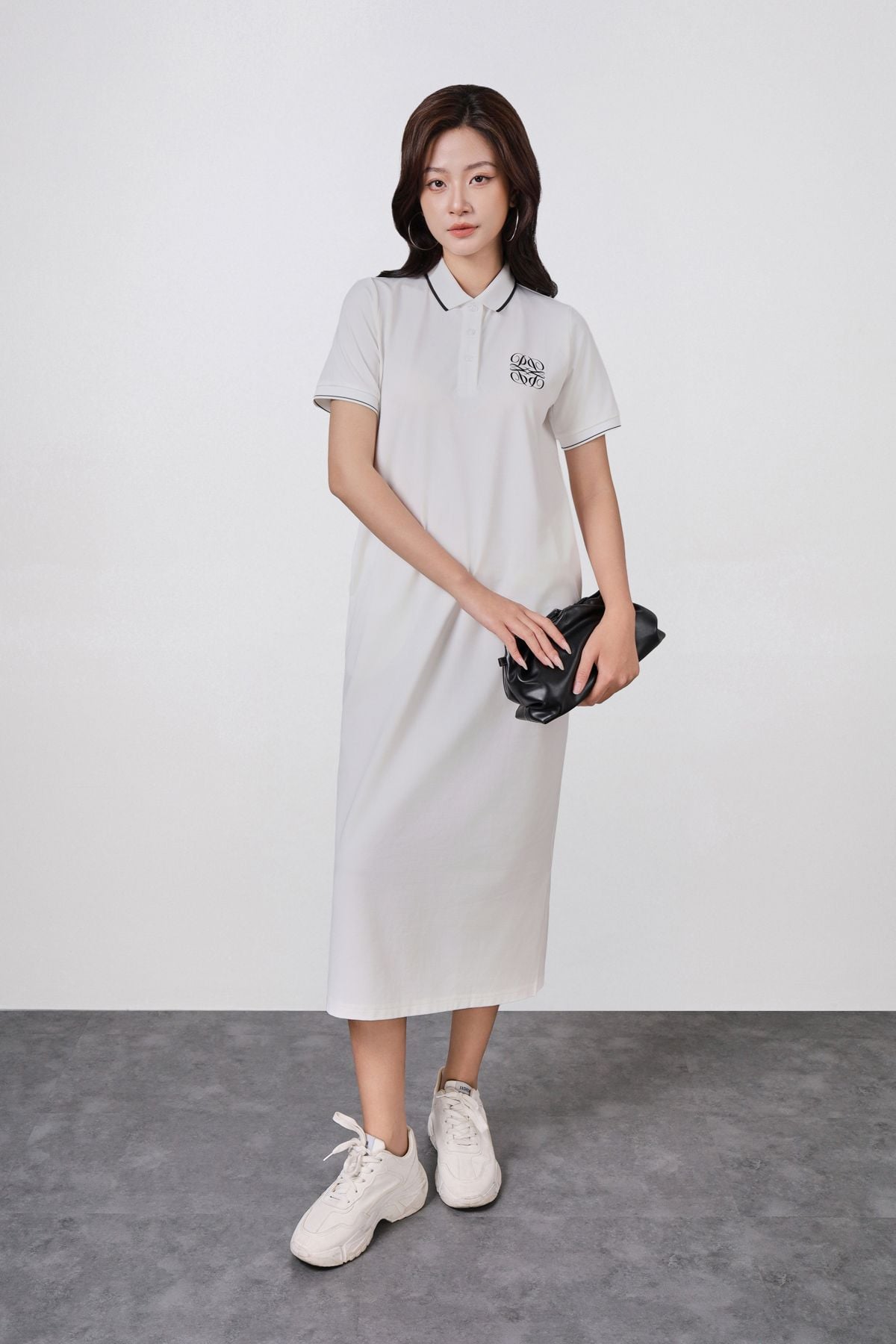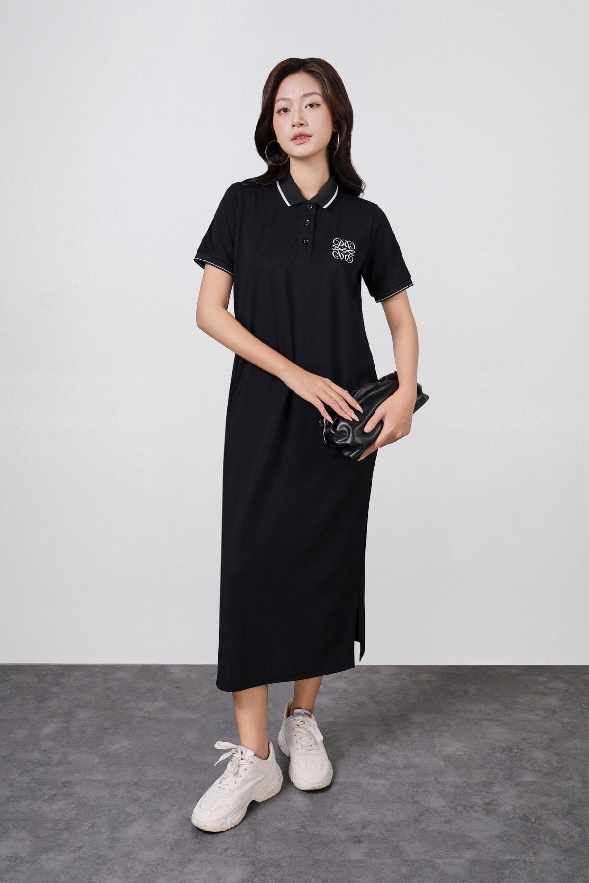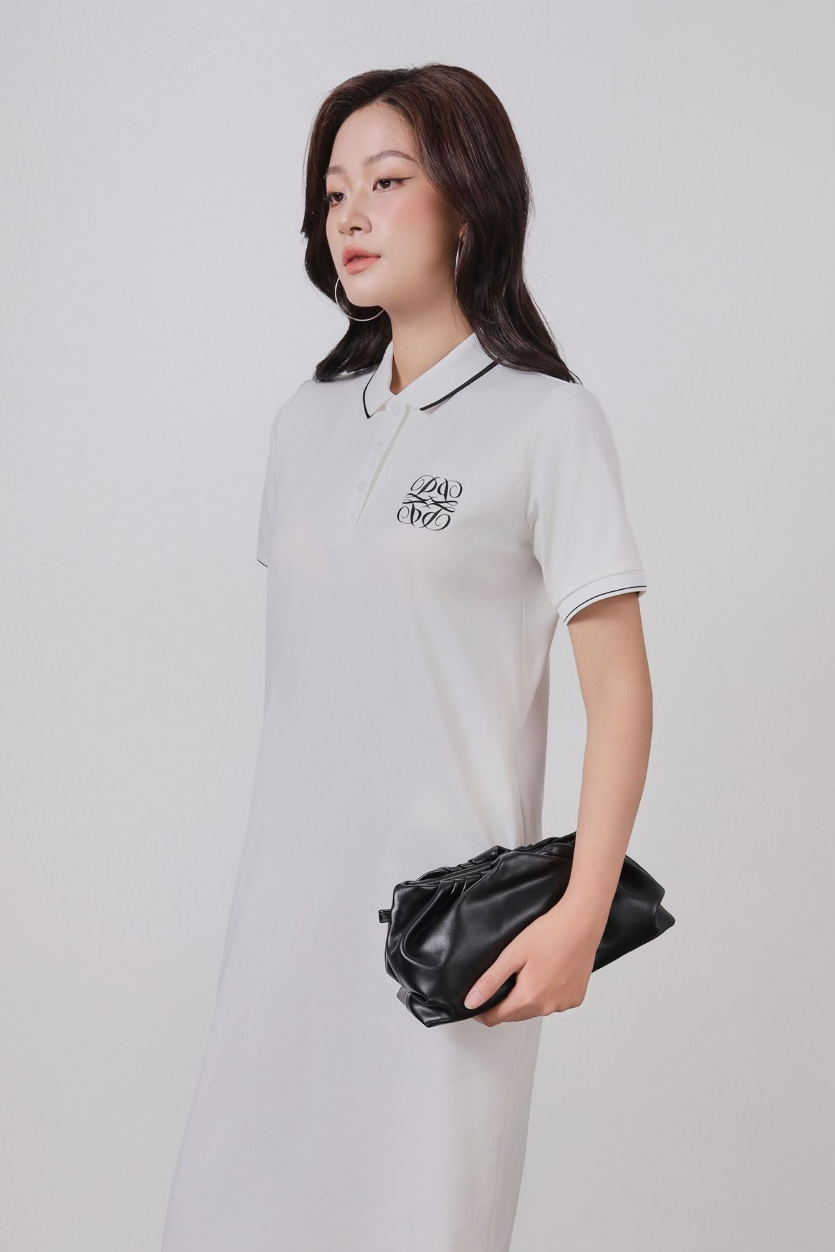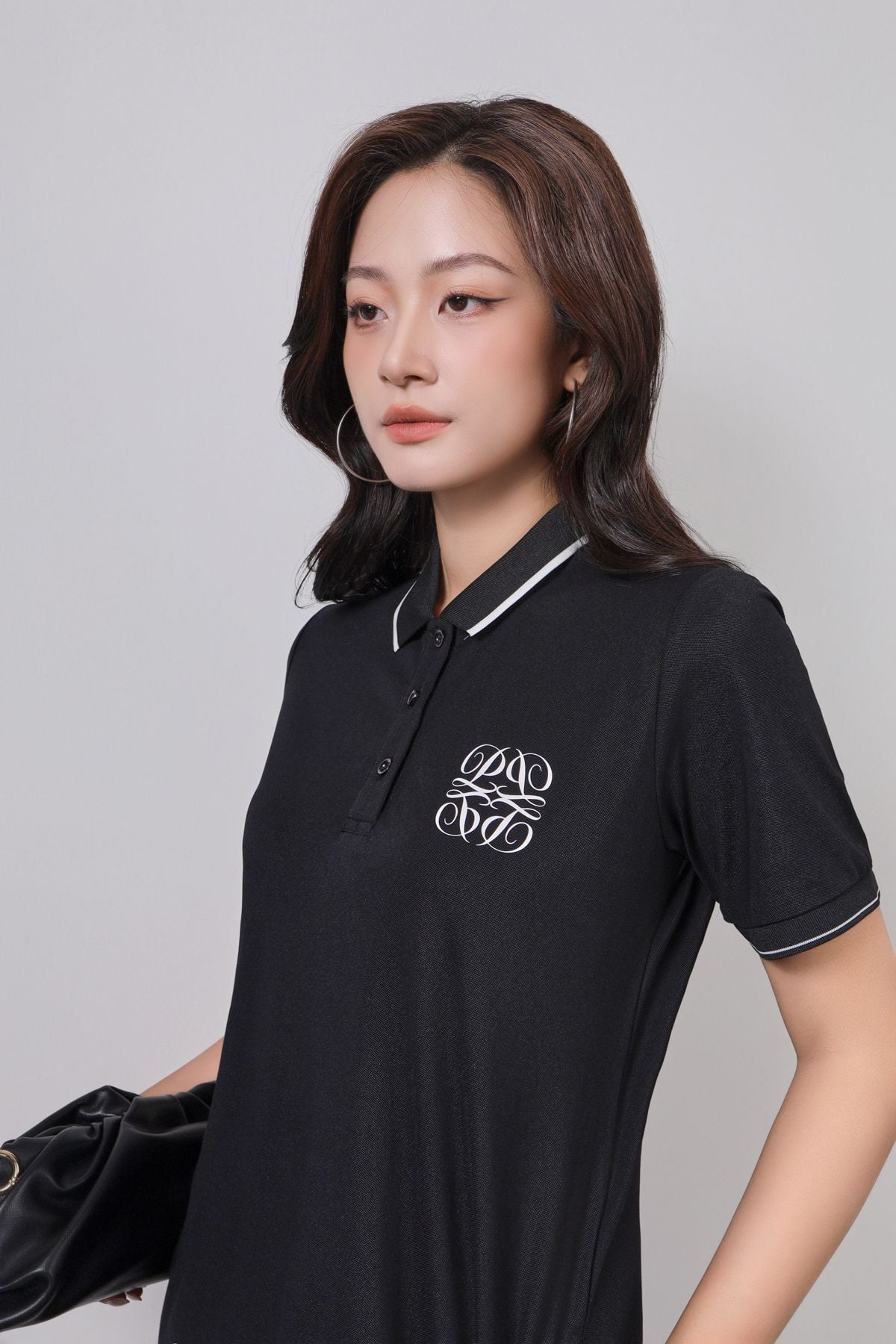 FDO052 - Đầm dệt kim vải cotton dáng suông cổ polo tay cộc ngực áo thêu hoạ tiết thời trang - PANTIO